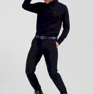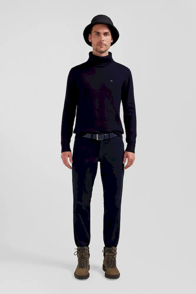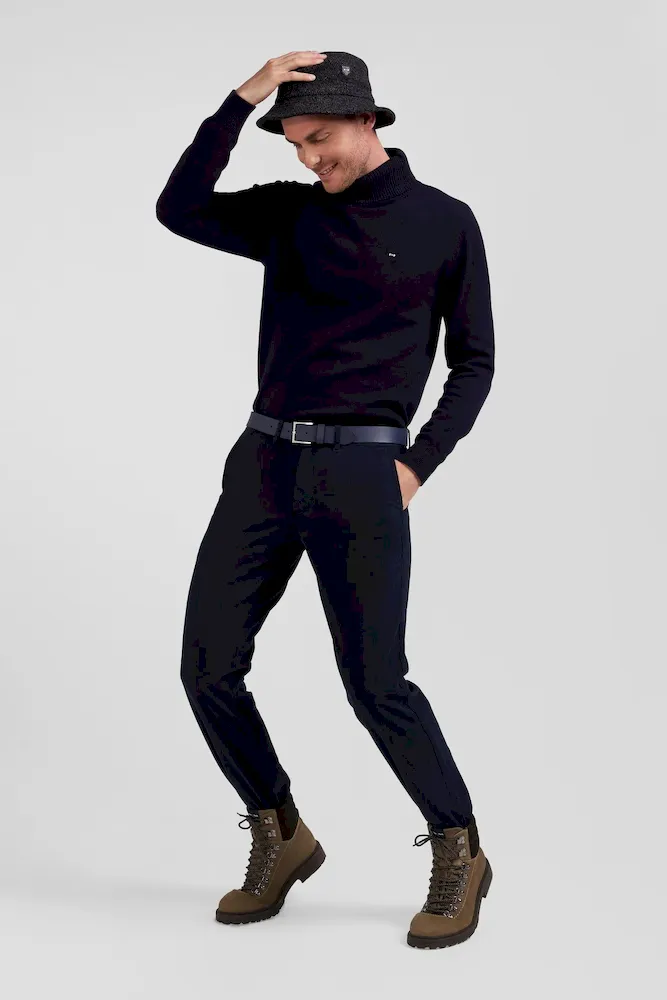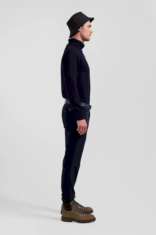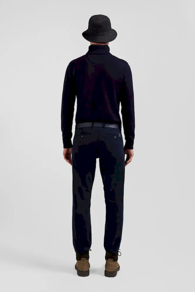 Pantalon chino bleu marine en gabardine de coton stretch coupe Regular