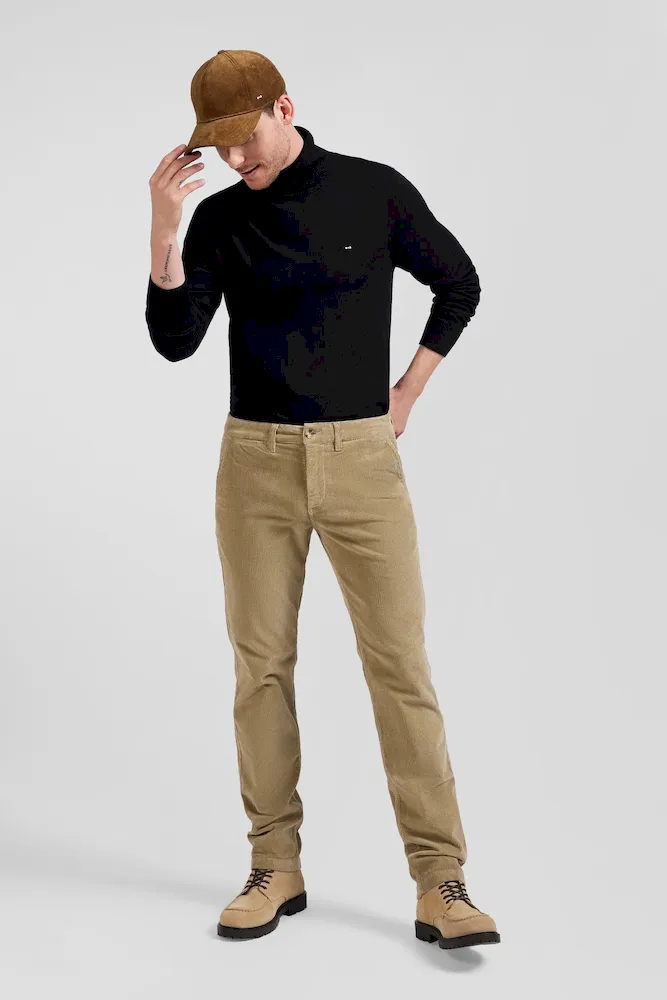 Notre pantalon chino sans pli à la coupe Regular droite se décline pour la saison automne-hiver dans 9 coloris. Sa poche arrière est agrémentée d’un ruban tricolore et de la griffe au nom de notre Maison française, des détails soignés qui lui confèrent une touche d’élégance discrète.
