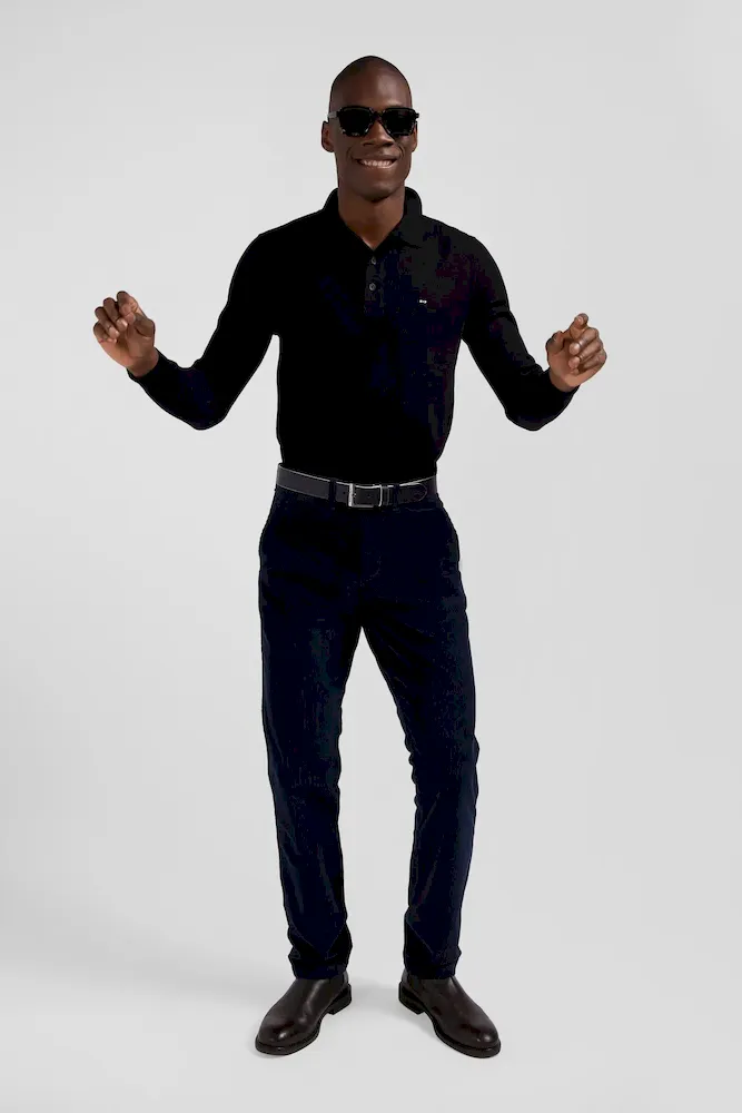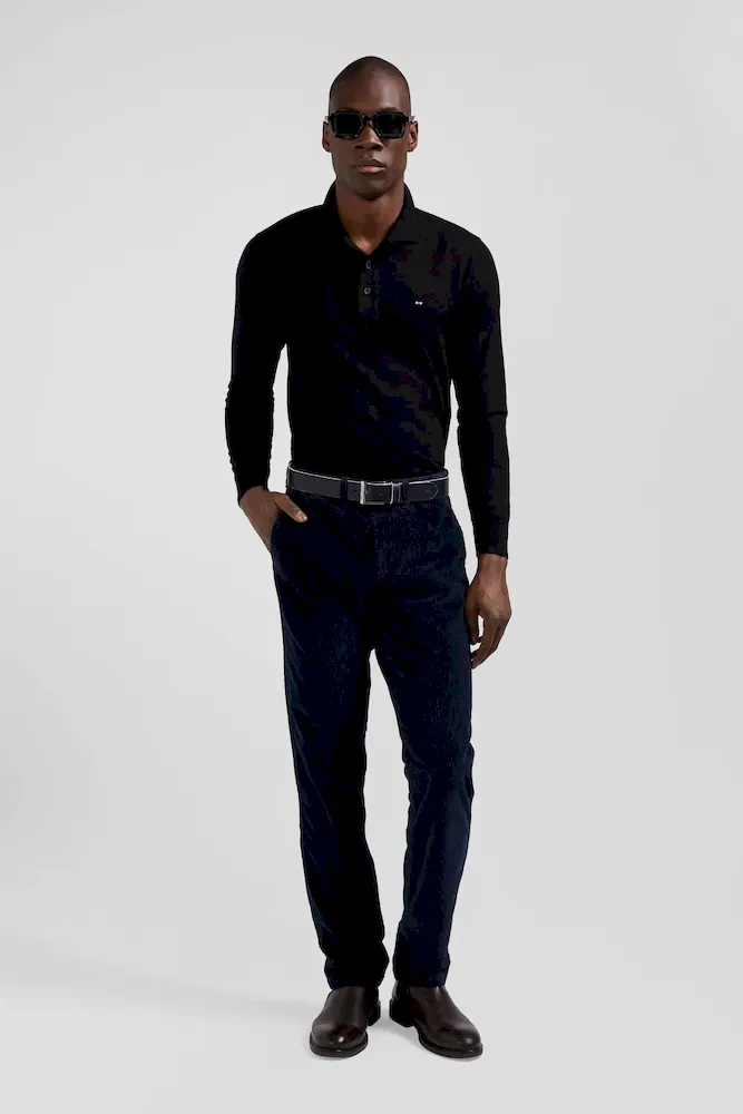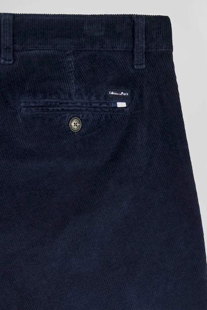Pantalon chino en coton velours stretch marine coupe Regular