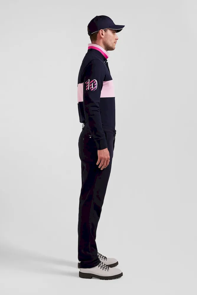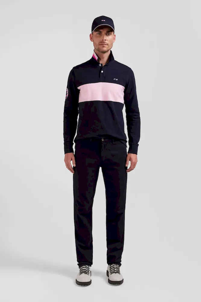 - Tissu cousu Eden Park au-dessus de la poche arrière avec ruban tricolore