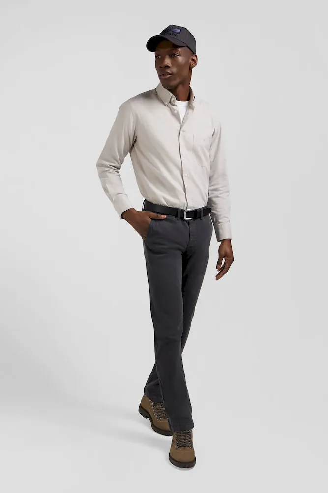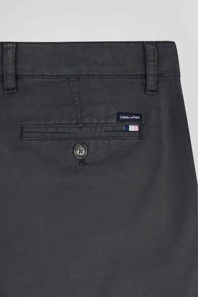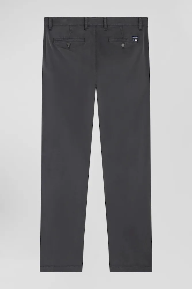 Pantalon chino gris anthracite en gabardine de coton stretch coupe Regular
