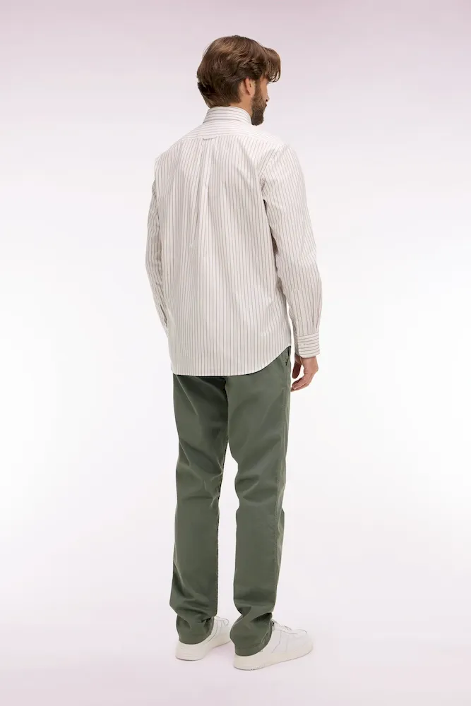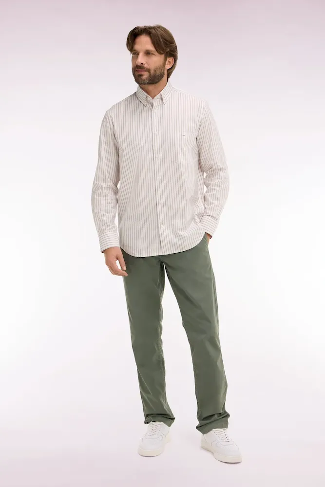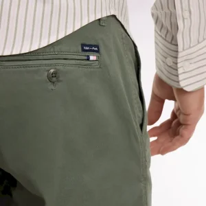 Ce chino pour homme en gabardine de coton stretch allie confort et style. Il comporte des poches latérales italiennes et des poches dos double passepoil, ainsi qu’un ruban ottoman tricolore sur la poche arrière. Disponible en plusieurs coloris intemporels et estivaux, ce pantalon chino est proposé dans une coupe regular droite pour une allure décontractée et plus d’aisance.
