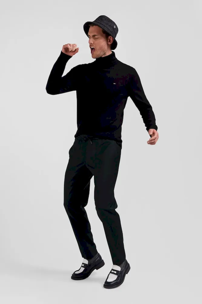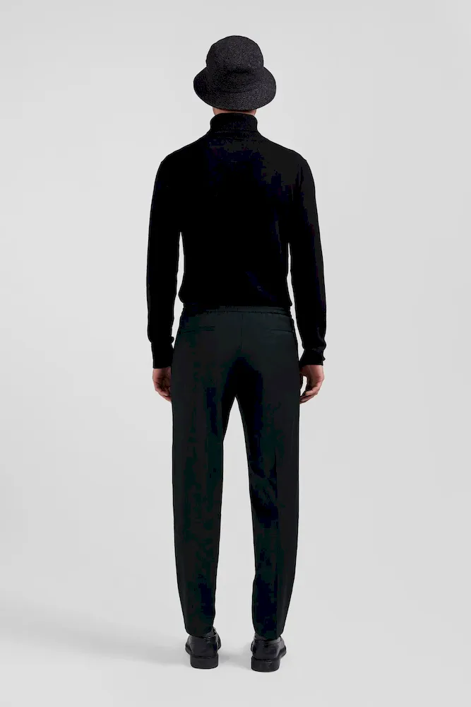 Optez pour notre pantalon homme en laine mélangée, combinant une coupe légèrement carotte avec une allure pratique. Ce pantalon inspiré à la fois des pantalons de costume et des pantalons jogging est doté d’une taille élastiquée et de détails soignés comme ses poches italiennes et poches dos passepoilées offrant à l’homme Eden Park un style décontracté mais élégant pour la saison froide.