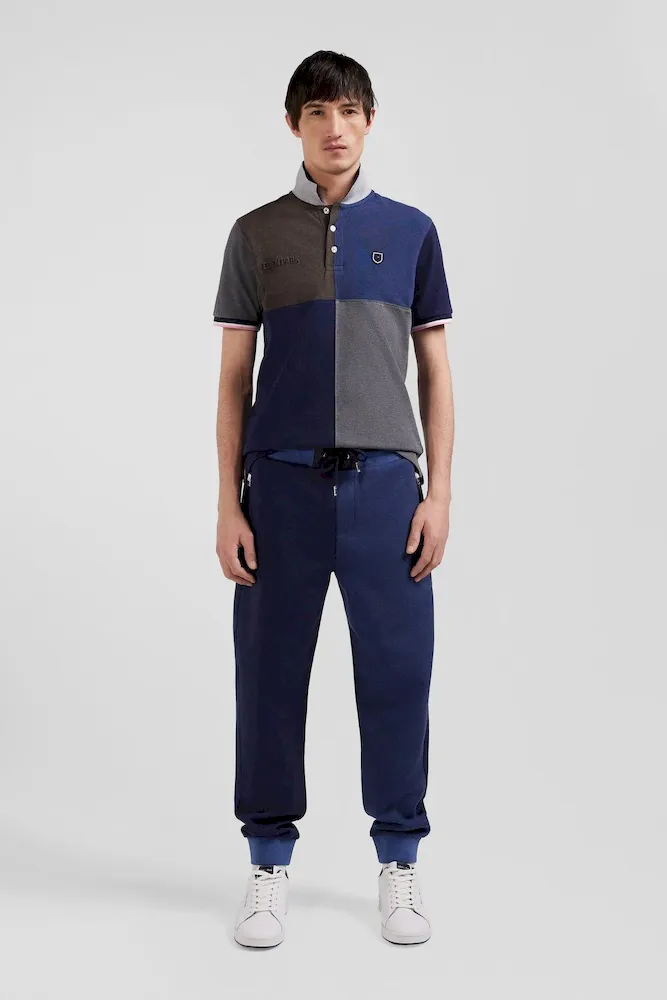Pantalon jogging en coton mélangé bicolore bleu marine coupe Regular