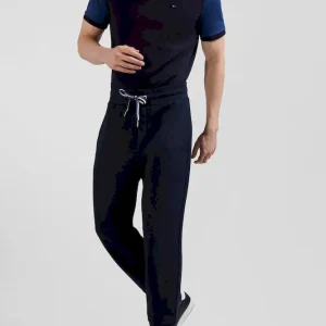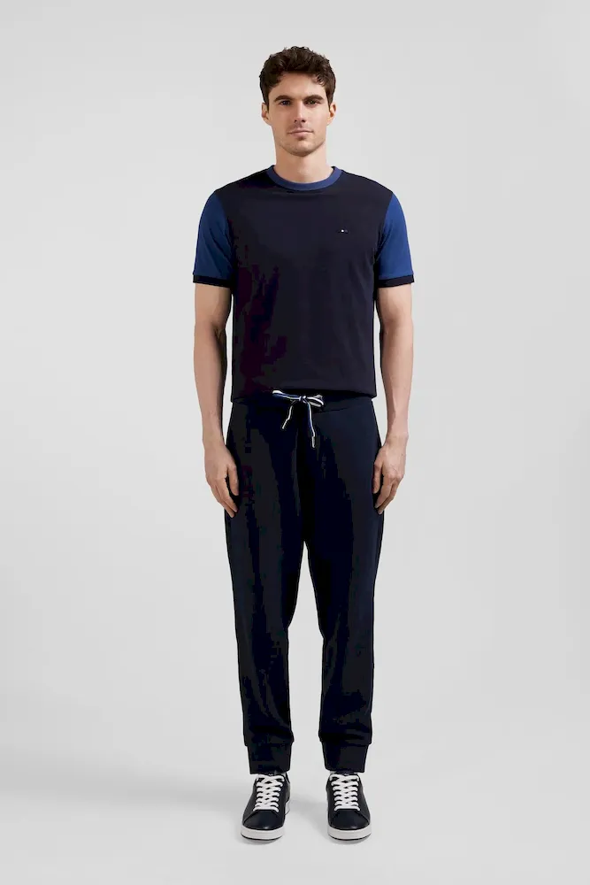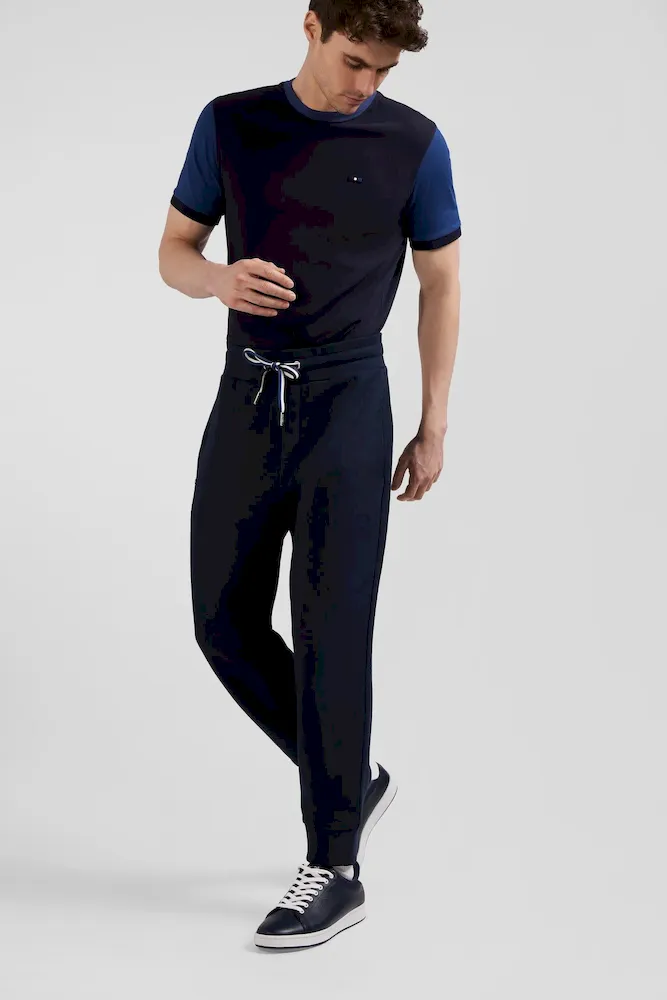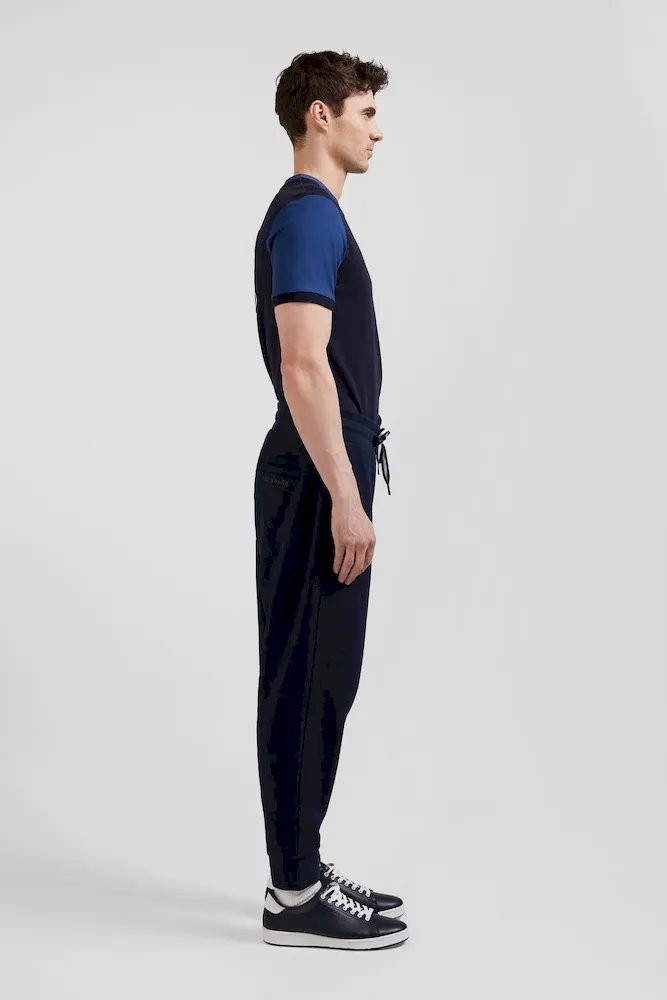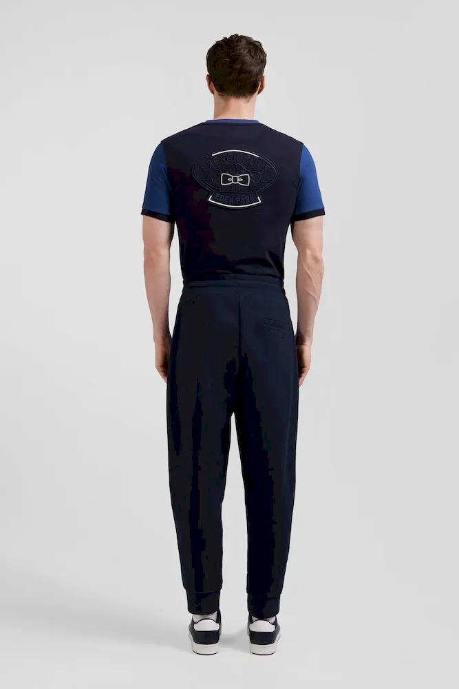 Avec ses cordons de serrage tricolore et sa broderie nœud papillon dans les mêmes teintes, ce pantalon jogging affirme les origines sportives de notre Maison française. Ses poches latérales sont complétées par une poche dos passepoilée assurant à ce jogging homme à la coupe légèrement carotte un tombé seyant.