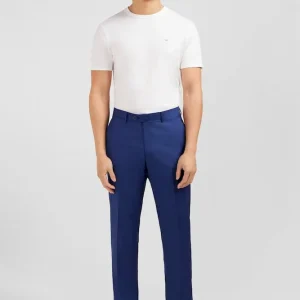 Pantalon regular bleu en laine à plis cassés