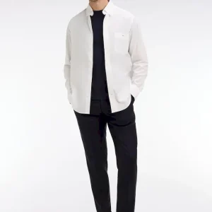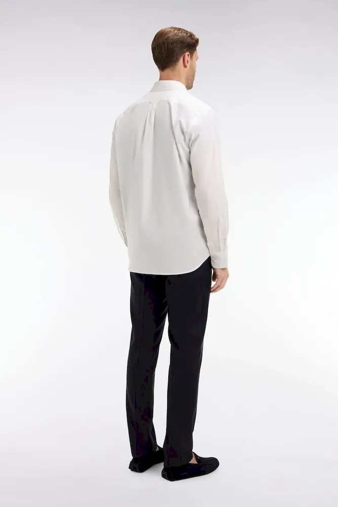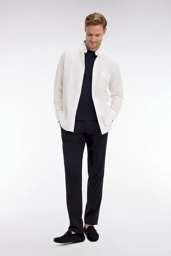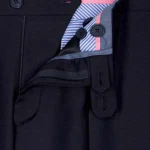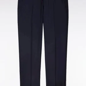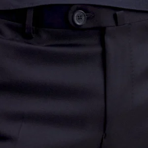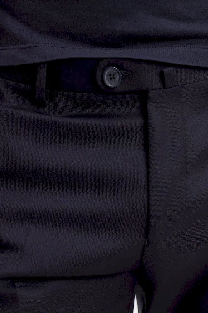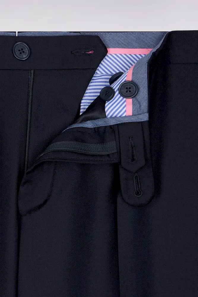 Conçu en laine fine, ce pantalon est élégant à souhait avec sa coupe ajustée et ses jambes à plis cassés. Il dispose d’une taille ajustable grâce à sa patte boutonnée et des passants pour ceinture. Fonctionnel, le pantalon possède des poches italiennes, une poche ticket prise dans la couture sous la taille, ainsi que deux poches passepoilées et boutonnées au dos.