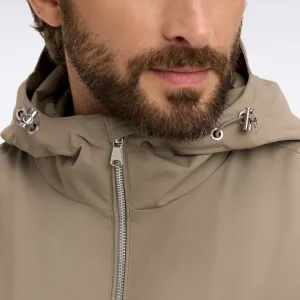 - Capuche fixe avec lien de resserrage et curseurs siglés