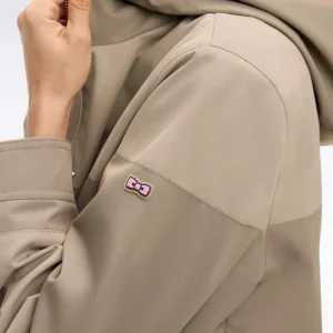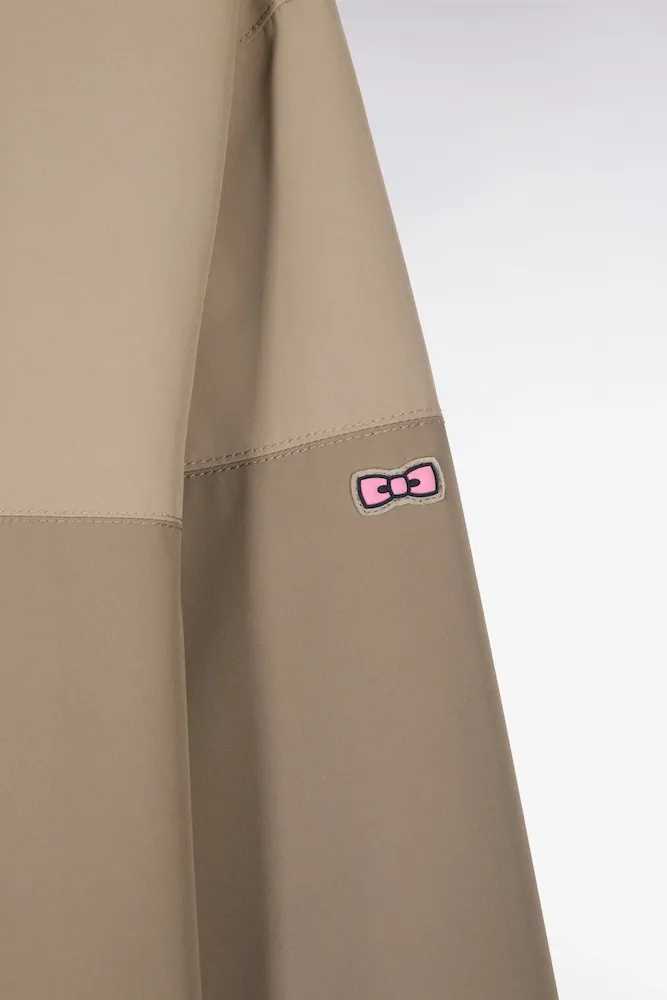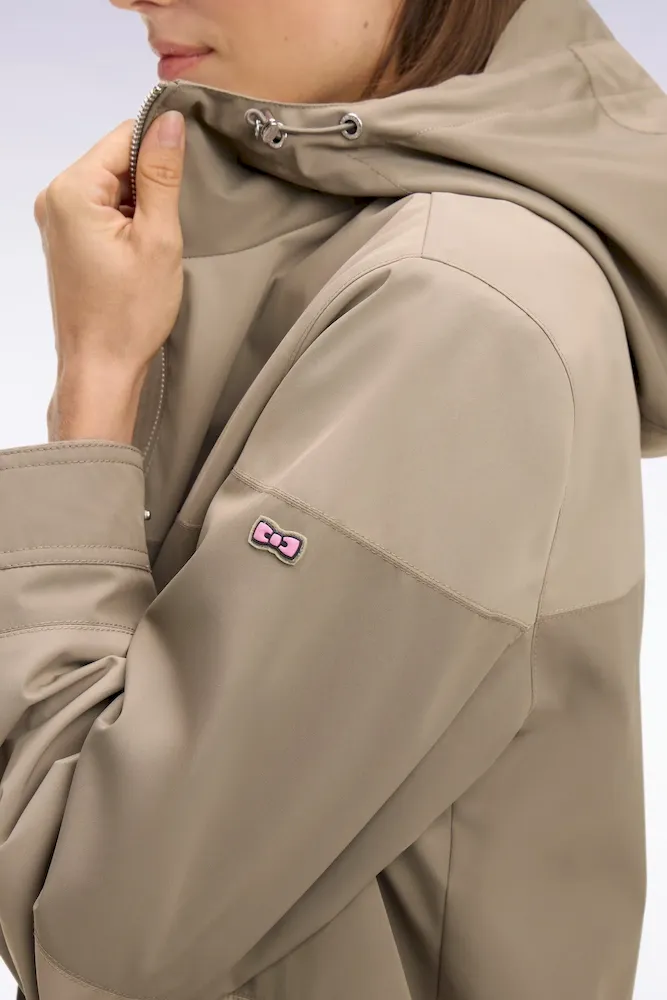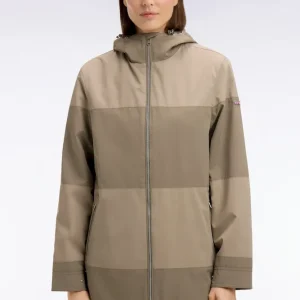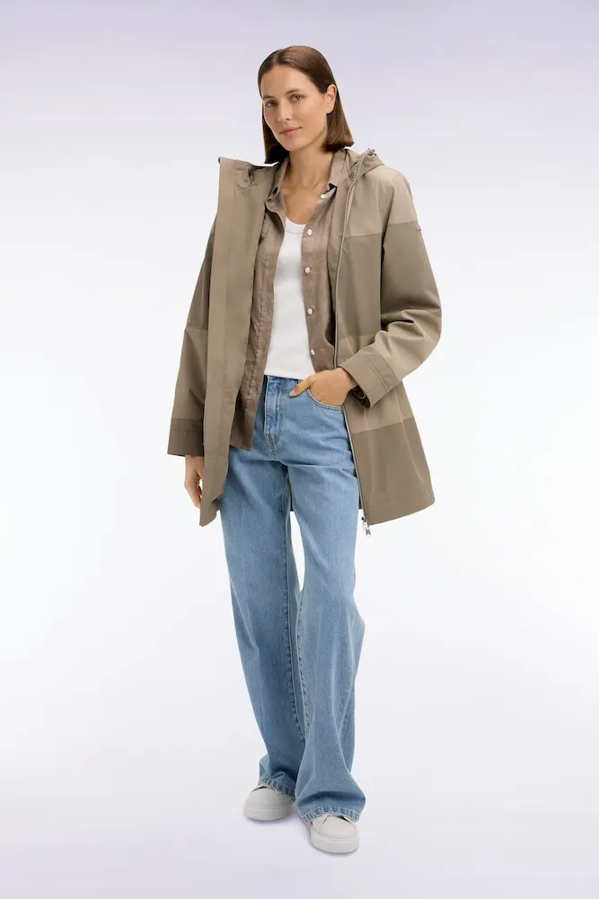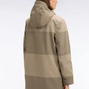 Parka longue kaki à rayures camaïeu et capuche intégrée