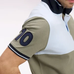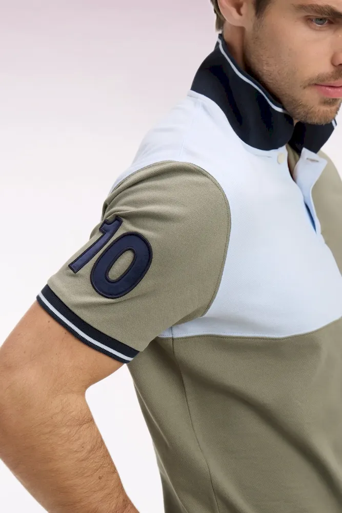 Polo à manches courtes en coton beige et ciel à cadrans coupe regular