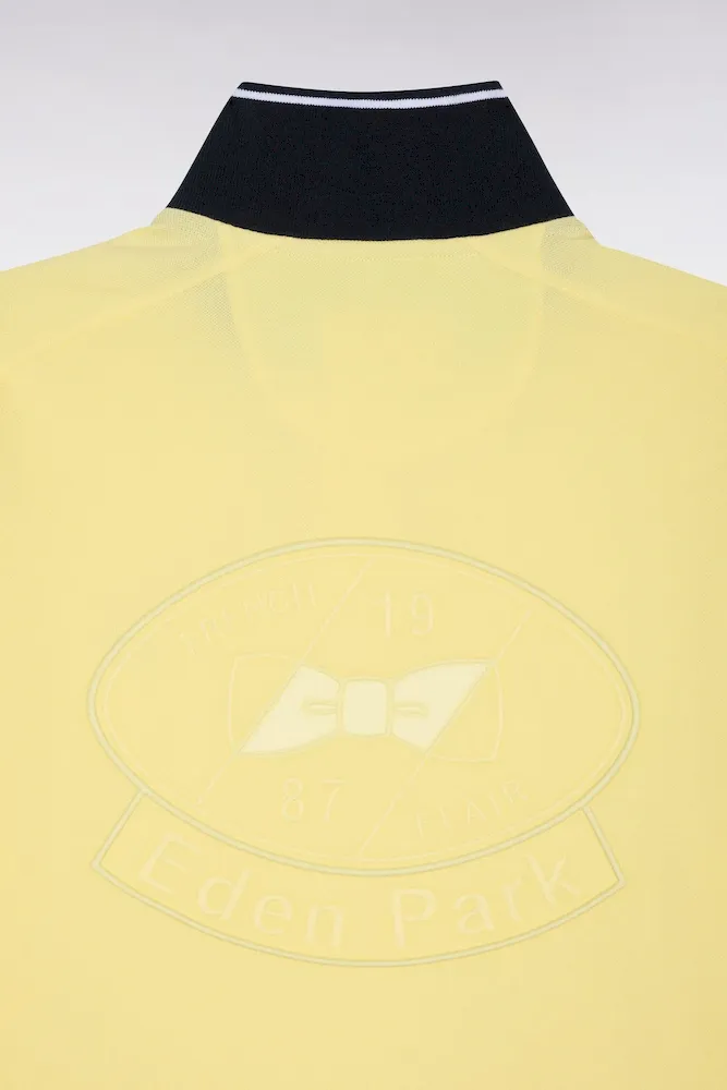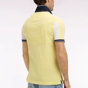 T-shirt mais aussi sweatshirts, maillots de rugby et polos arborent un colorama estival allant de nos rose et ciel signature au vert d’eau en passant par le jaune. Ces polos à manches courtes arborent une coupe regular droite confortable. Découpes de manches contrastées, bords-côtes et liseré au col ajoutent à leur charme, mais c’est surtout leur broderie dos, réalisée en ton sur ton et doublée d’un tissu cravate qui en fait une sélection irrésistible pour la saison. Avec un short, ce polo vous suit jusqu’à la plage tandis qu’associé à un jean, un chino ou un jogging il signe une silhouette plus urbaine.