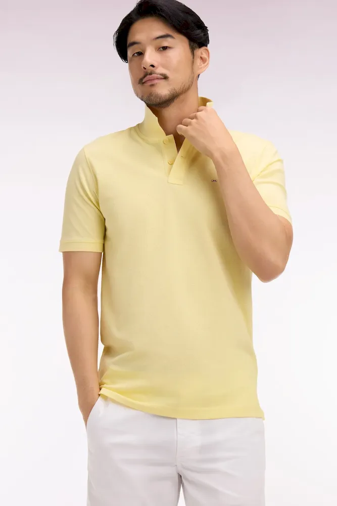 Polo à manches courtes en coton jaune clair coupe regular