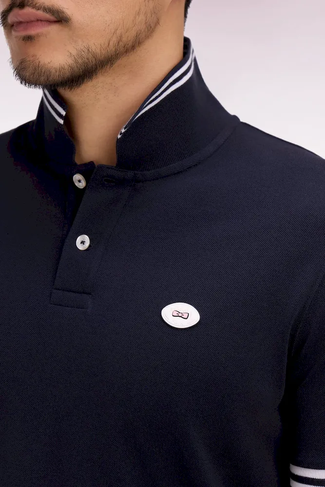Notre nouveau polo uni assure une allure sport-chic en toutes occasions. Détail élégant, il est doté de fines rayures contrastées en bordures de col et de manches. Un badge en gomme silicone sur la poitrine ajoute au charme de ce polo masculin facile à associer au vestiaire de la saison comme à vos pièces préférées.