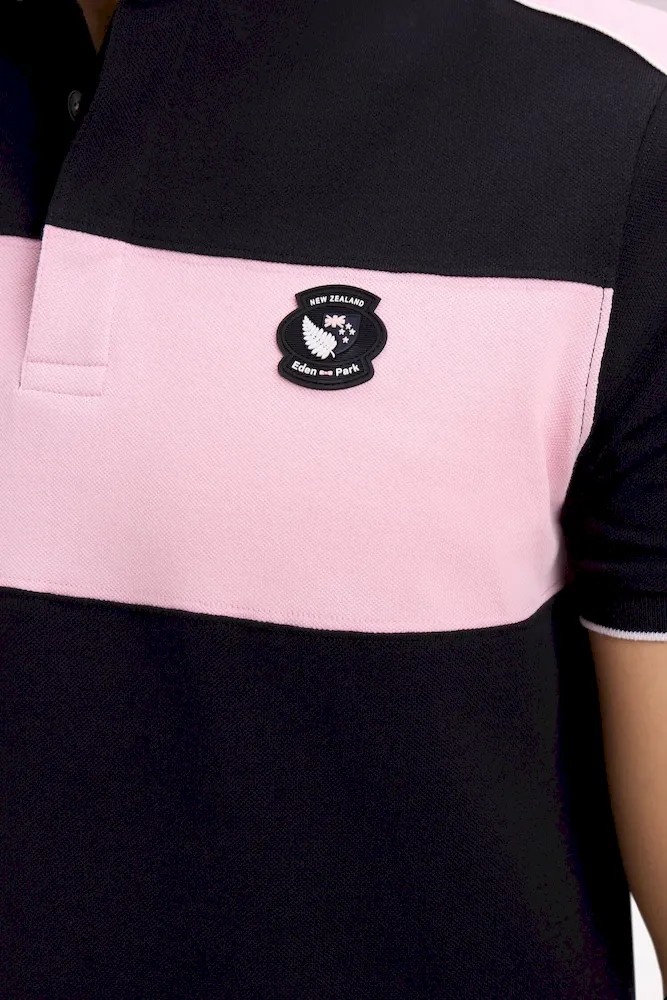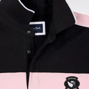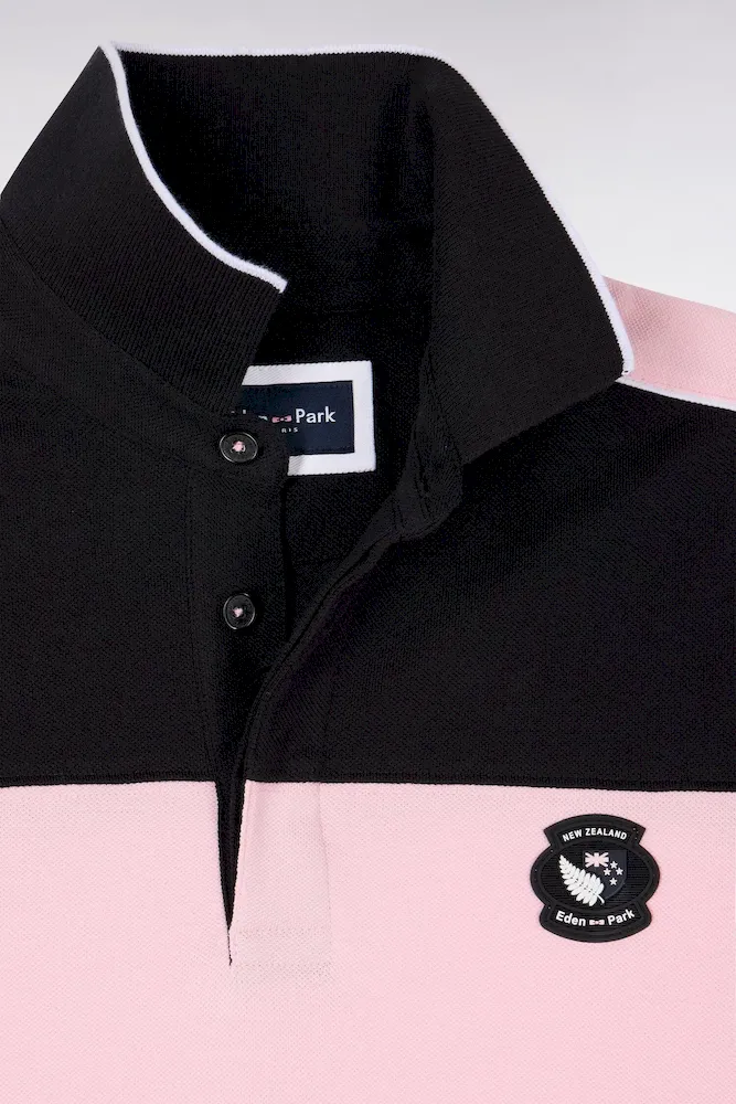 Ce polo en piqué de coton doux et confortable rend hommage à la Nouvelle-Zélande, terre emblématique du rugby. Disponible en rose fuchsia ou en noir, il présente une large bande contrastée sur la poitrine sur laquelle est appliqué l’écusson iconique New Zealand, mettant en valeur le drapeau de cette nation. Le travail du coupé-cousue, caractéristique des ateliers de la Maison, se dévoile à travers un jeu de colorblock et des liserés contrastés savamment placés.