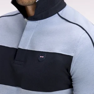 Ce polo sport chic en jersey de coton stretch met en lumière la finesse des matières sélectionnées par notre Maison et l’imagination de nos ateliers pour réinventer chaque saison de nouvelles variations de ce classique masculin. Sa coupe regular assure une silhouette nette et confortable, tandis que ses finitions contrastées, bande sur la poitrine accordée à ses bordures de manches et passepoils le long des découpes de manches, garantissent une touche athlétique qui dynamise la silhouette de la saison. Un écusson nœud papillon et un liseré soulignant son élégant col polo parachèvent ce polo manches courtes offert en beige, ciel ou marine.