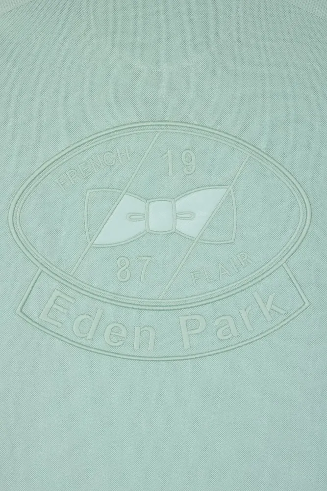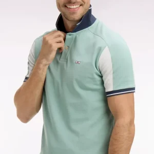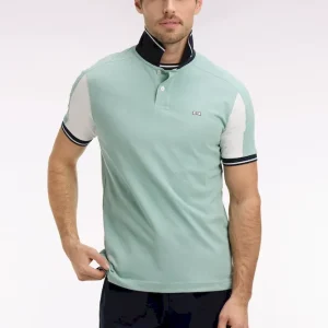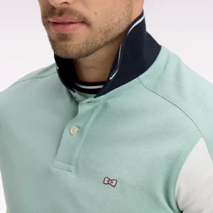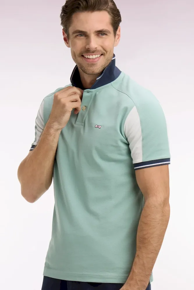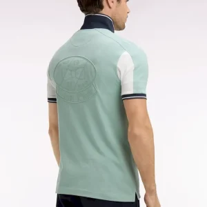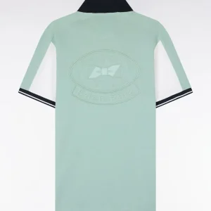 Polo à manches courtes en coton vert d’eau brodé coupe regular
