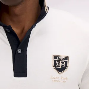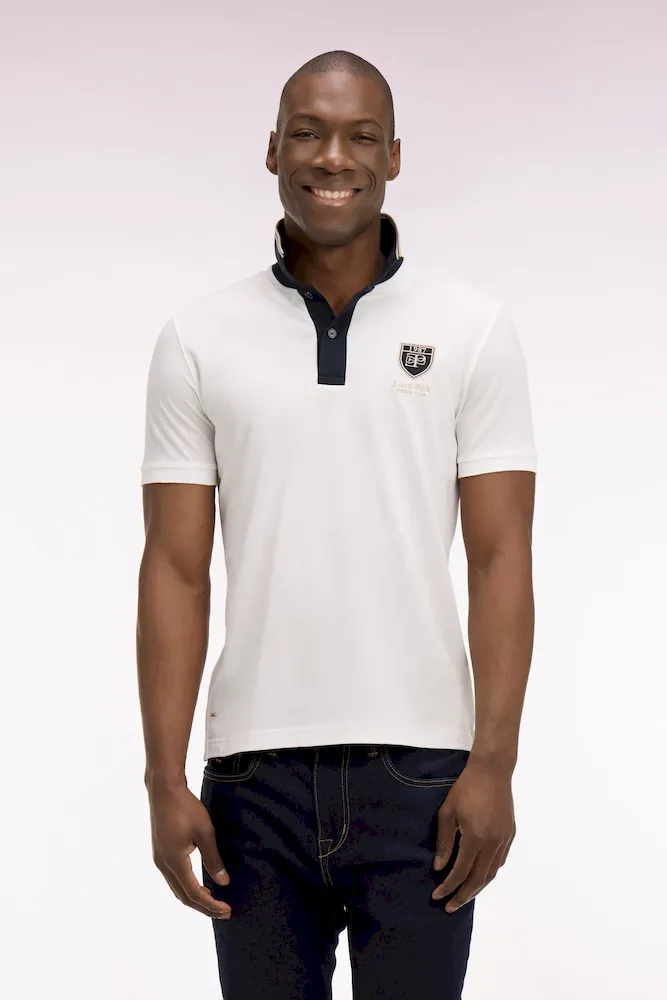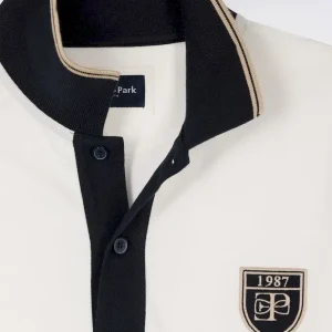 Ce polo en piqué de coton s’impose comme une pièce raffinée du vestiaire sport chic grâce à son écusson poitrine réalisé dans un esprit Ivy League, clin d’œil à une esthétique quiet luxury très actuelle. Sa coupe regular droite et son col polo marine finement rayé, prolongé par une patte de boutonnage assortie, apportent structure et élégance, tandis que les bas de manches en maille unie renforcent une allure plus habillée. Décliné dans des coloris pastel intemporels, il se porte aussi bien avec un short coordonné qu’avec un jean brut, selon l’allure recherchée.