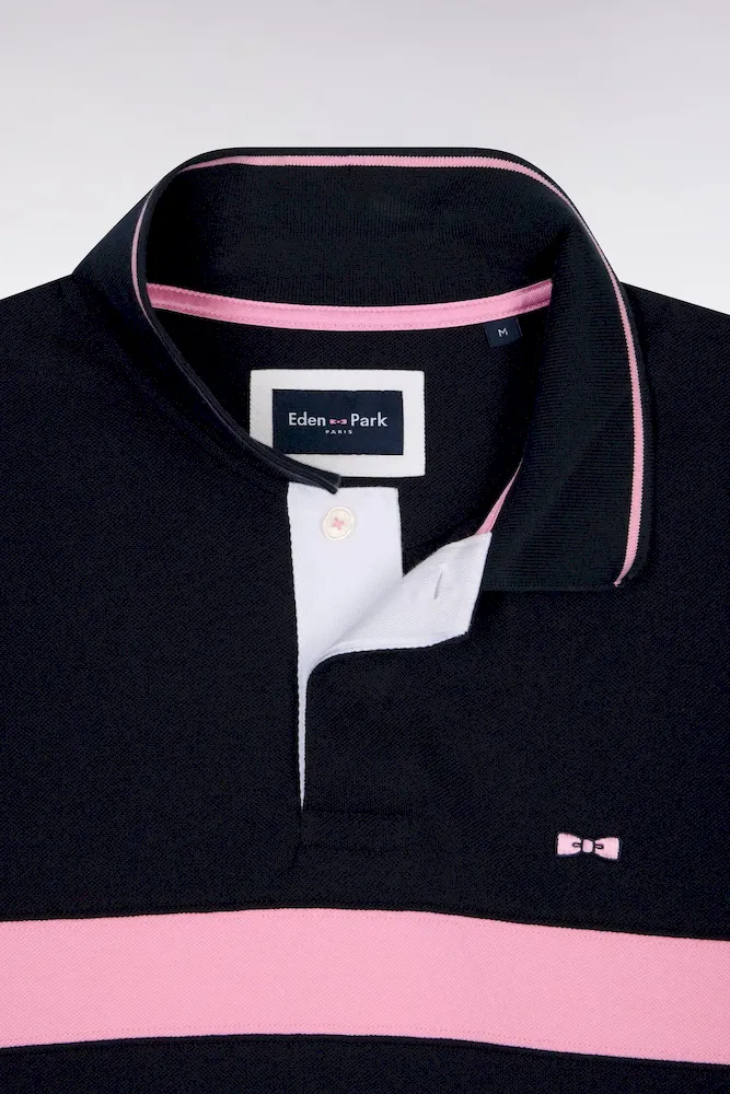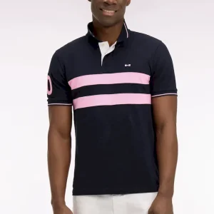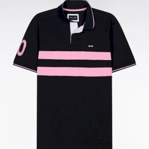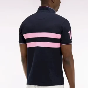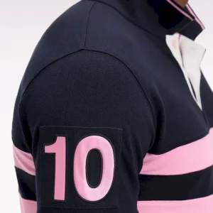 Ce polo à manches courtes en piqué de coton revisite les codes rugby avec ses deux bandes horizontales contrastées sur la poitrine et sa broderie 10 sur la manche, clin d’œil au numéro historique du fondateur de notre Maison. Son col rayé en bords-côtes et ses finitions contrastées apportent structure et élégance. Un essentiel sport chic au caractère affirmé pour accompagner votre quotidien.