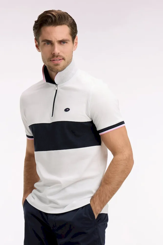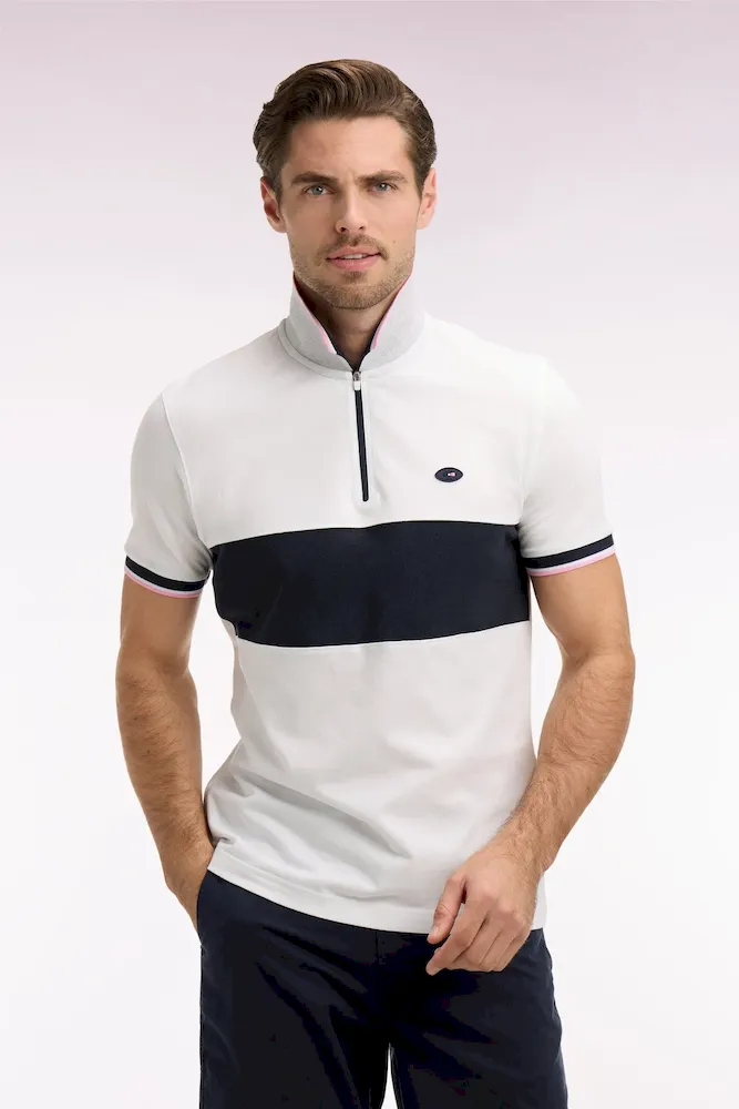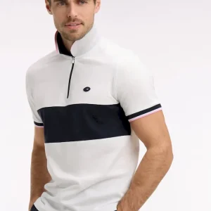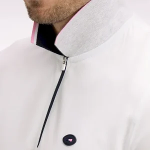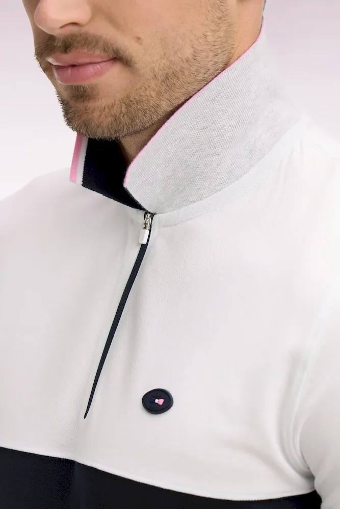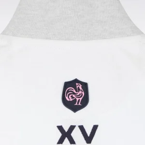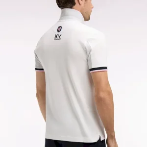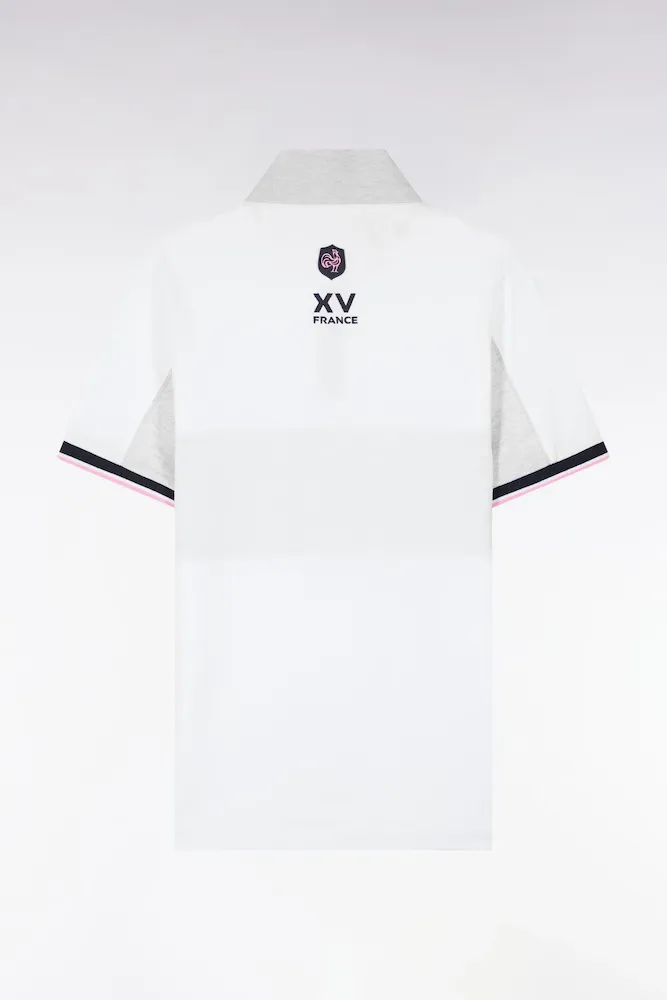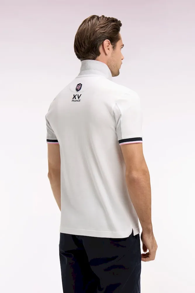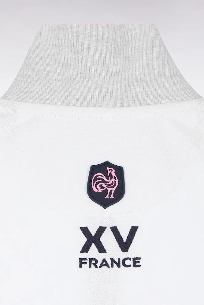 Craquez pour ce polo XV de France disponible en marine ou en blanc. Avec ses bordures de manches et de col tricolores marine, blanche et rose, son dessous de col chiné et sa large bande contrastée sur la poitrine, ce modèle allie élégance sport chic et dynamisme. Détail unique : ce polo ne s’agrémente pas d’une patte de boutonnage mais d’un zip soigné pour une allure plus urbaine.
