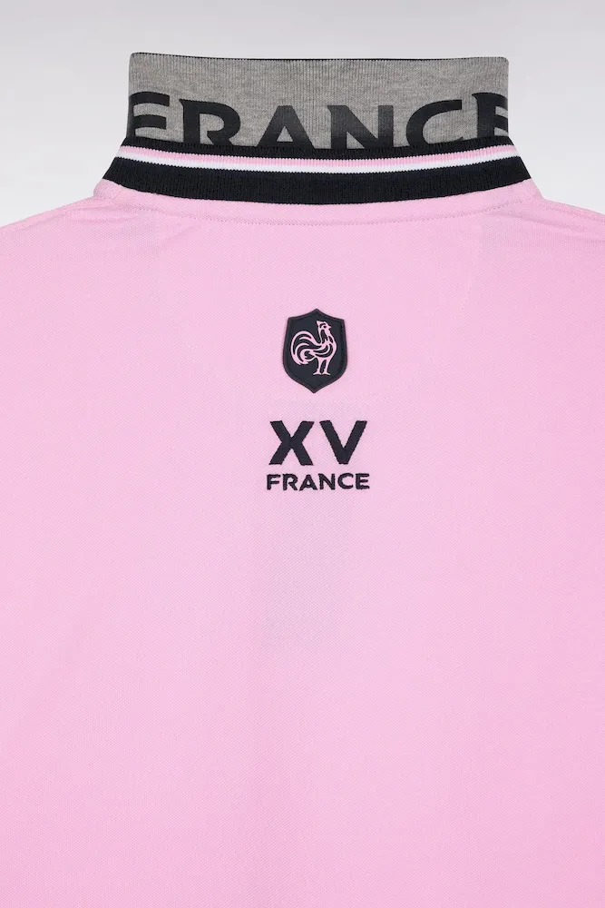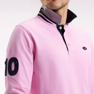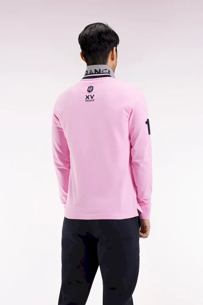 Avec son double col contrasté souligné d’une fine rayure tricolore, ce polo manches longues affirme son caractère sport-chic dans l’esprit du vestiaire Eden Park. Réalisé en coton piqué, il se distingue par son impression « FRANCE » sous le col et sa broderie N°10 sur la manche, clin d’œil au maillot porté par Franck Mesnel mis en valeur par l’application d’un élégant tissu cravate imprimé aux couleurs de notre emblème. Proposé en version rose ou marine pour une silhouette élégante et décontractée