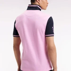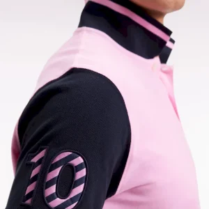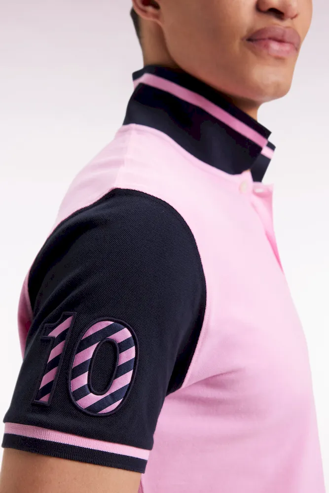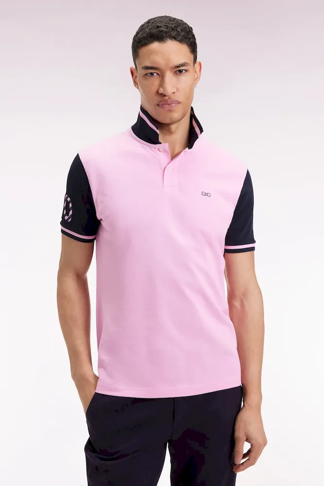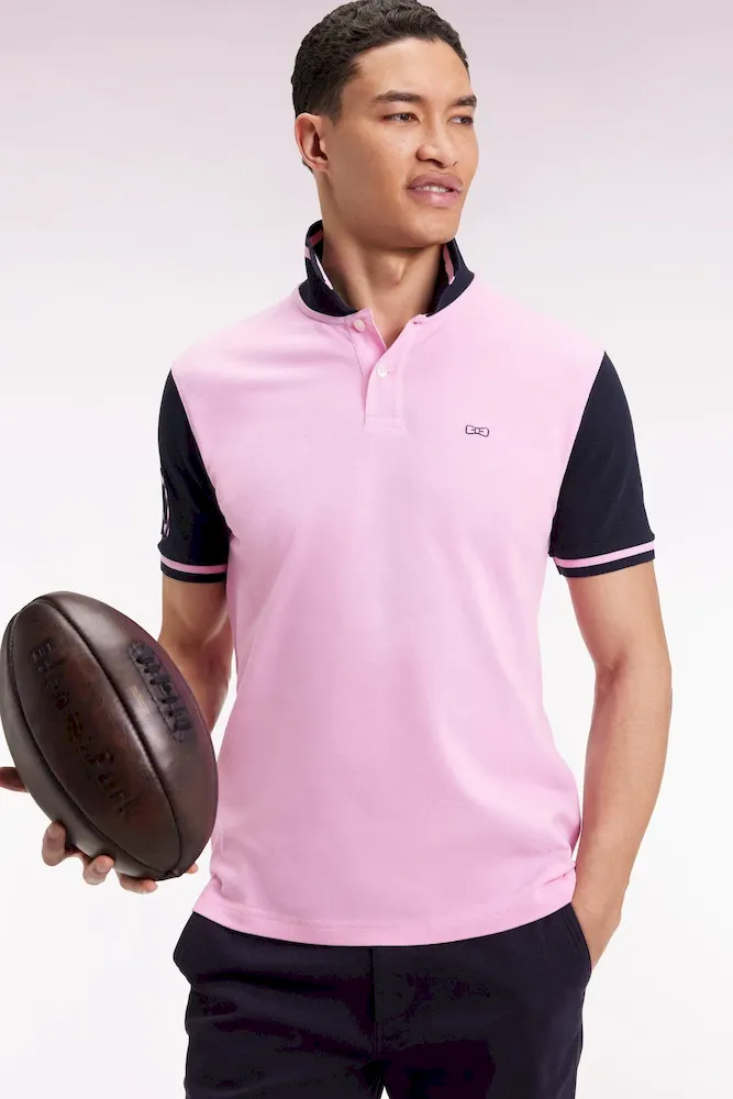 Réalisé en coton rose au col et manches bleu marine ou dans une version écrue et noire, ce polo homme à manches courtes arbore une rayure contrastée sur ses finitions bords-côtes et une broderie N°10 sur la manche réalisée à l’aide de tissu cravate rayé. Ce numéro, rappel du maillot porté par le fondateur d’Eden Park en équipe nationale, s’avèrera un porte-bonheur redoutable pour ne jamais rester sur le banc de touche du style. Léger et confortable, ce polo vous accompagnera en toutes saisons