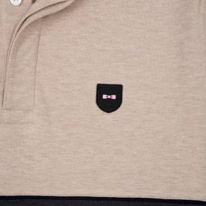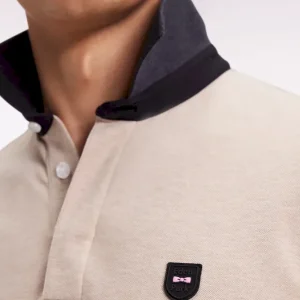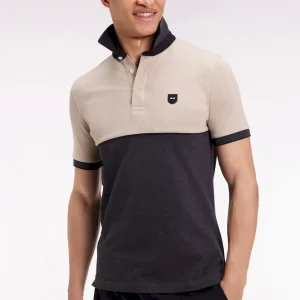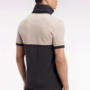 Ce polo homme bicolore joue la carte de l’audace discrète. Ses coloris beige et gris créent un équilibre idéal mis en valeur par un passepoil central et un dessous de col noir. À porter avec un pantalon beige pour appuyer ses contrastes