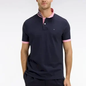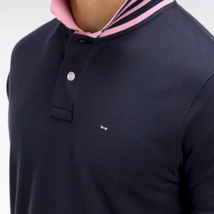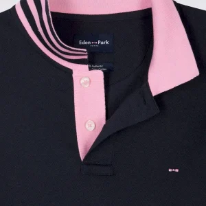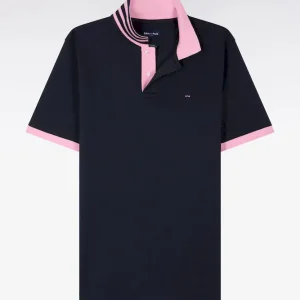- Col polo contrasté avec sous-col rayé