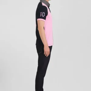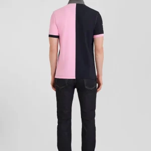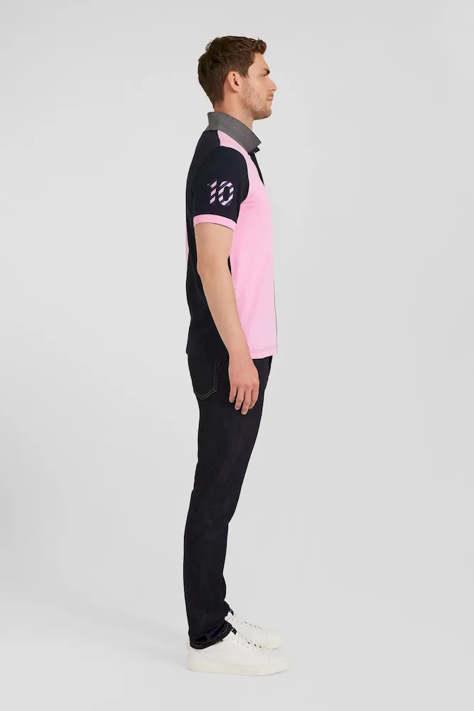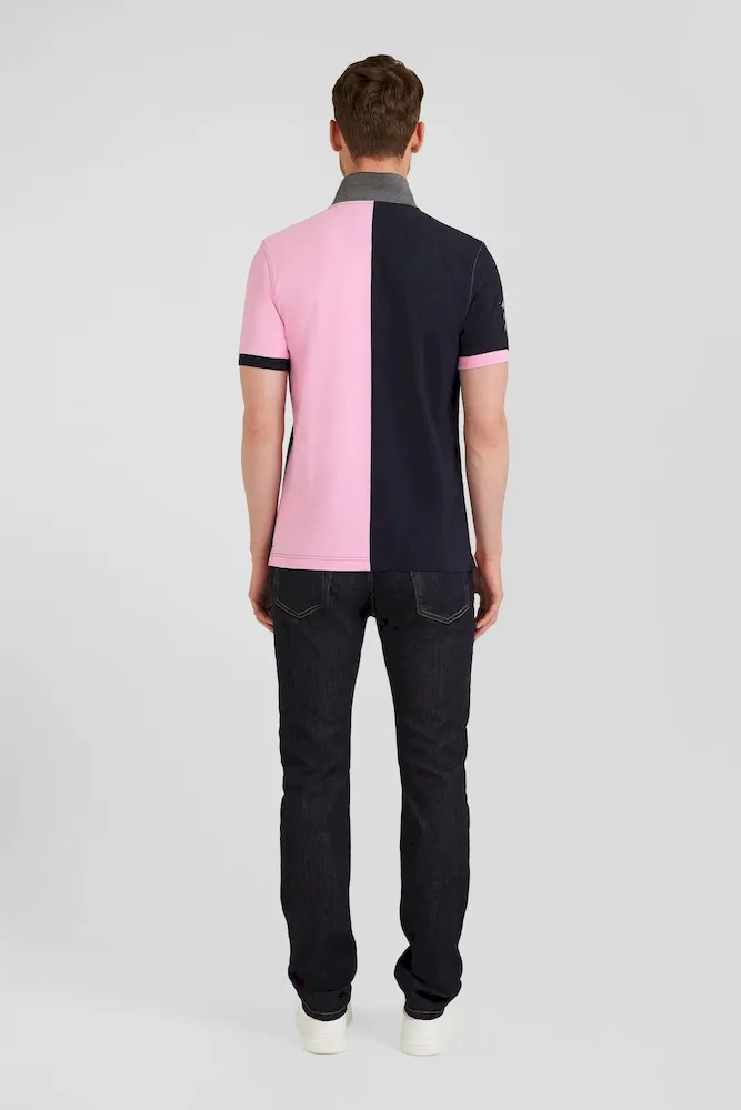 Polo manches courtes bicolore en piqué coton bleu marine et rose coupe Regular