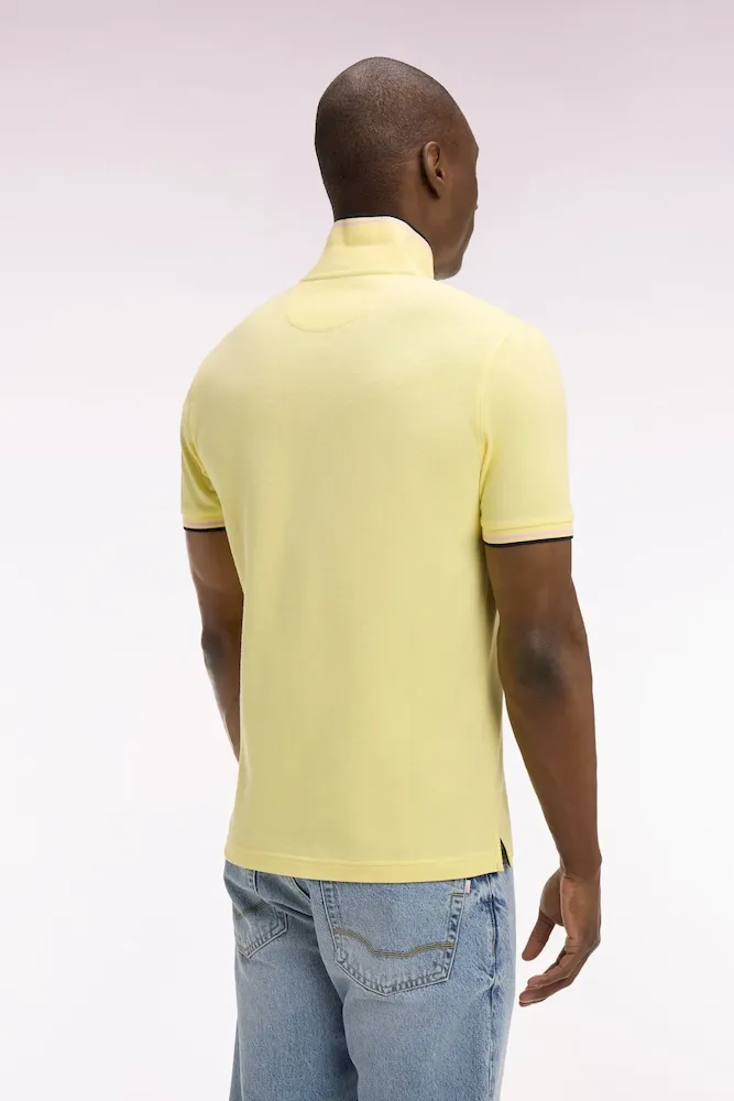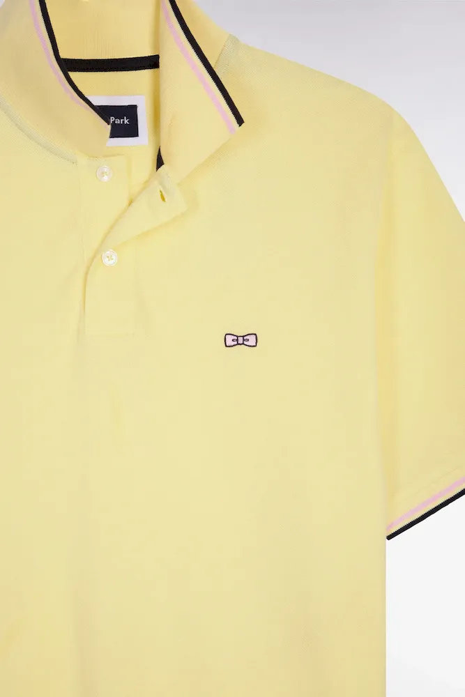 Travaillé dans un luxueux piqué de coton pur, ce polo homme met l’accent sur la qualité de sa matière et la précision de son tricotage. Sa coupe regular assure une silhouette équilibrée et une belle liberté de mouvement, tandis que les finitions rayées délicates soulignant son col polo et ses bords-côtes manches lui insufflent un style athlétique. Comme nos iconiques, ce polo à manches courtes porte notre broderie nœud papillon, emblème de notre Maison française. Un modèle intemporel offert dans une large palette de coloris, de l’indémodable polo en coton blanc au jaune lumineux pour ensoleiller votre vestiaire du week-end.