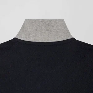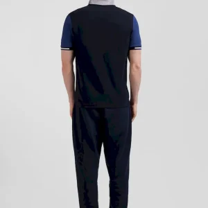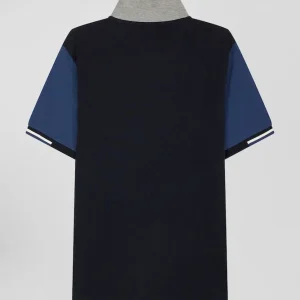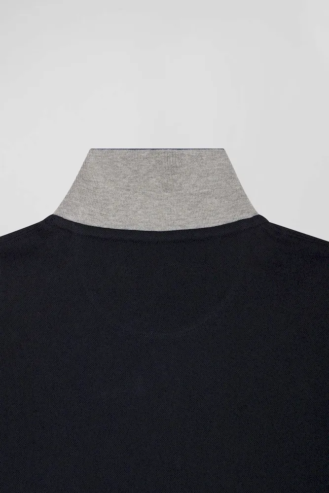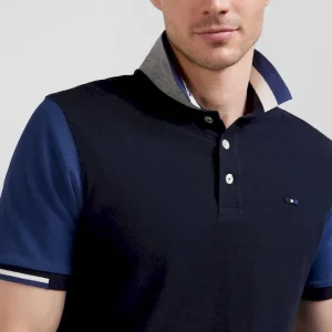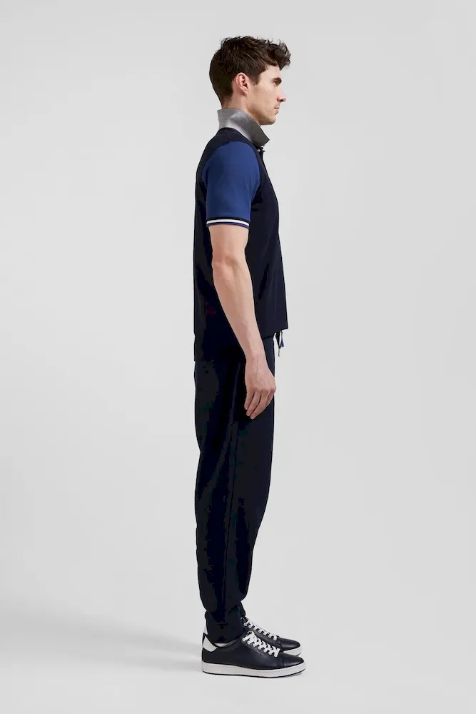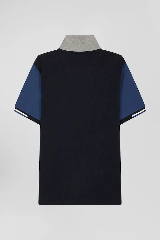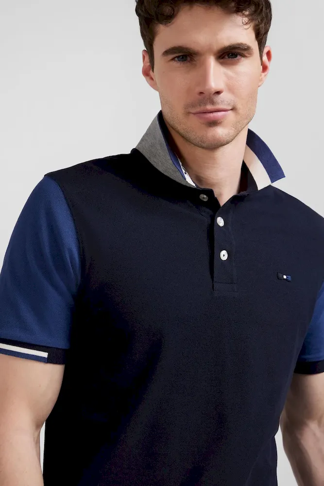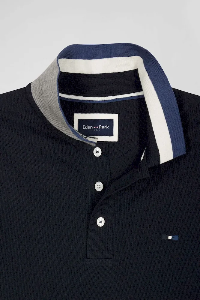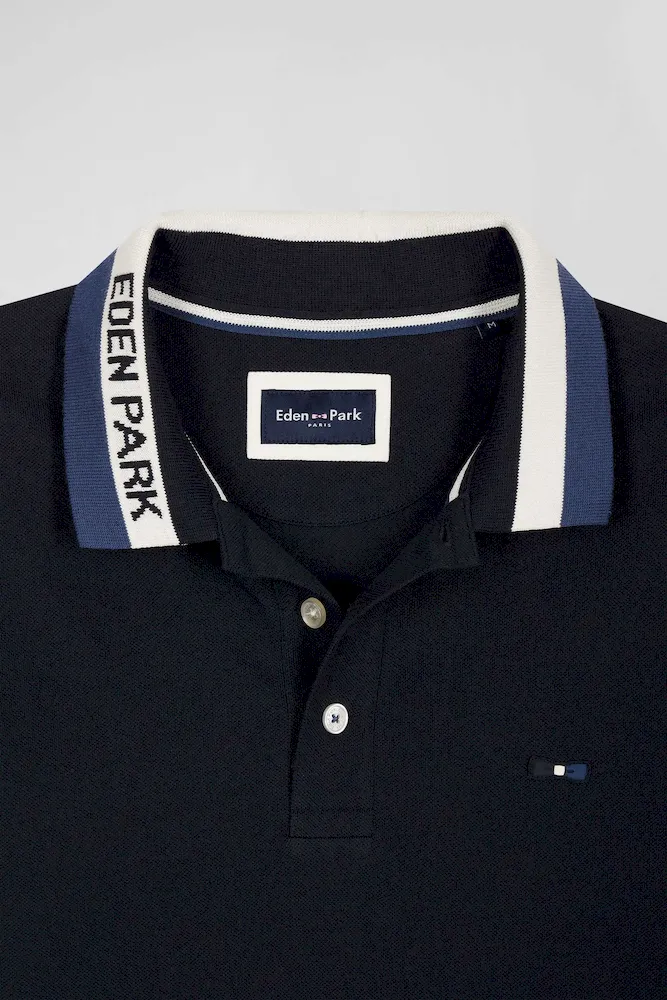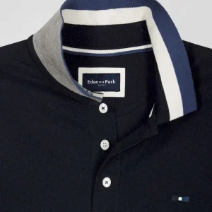 Polo manches courtes en piqué coton bleu marine col jacquard Eden Park coupe Regular