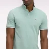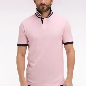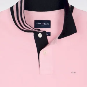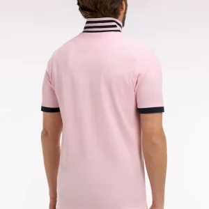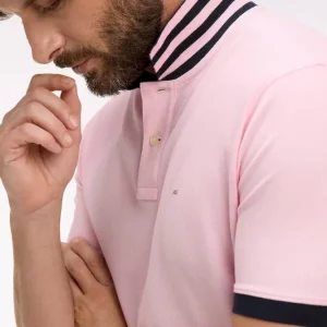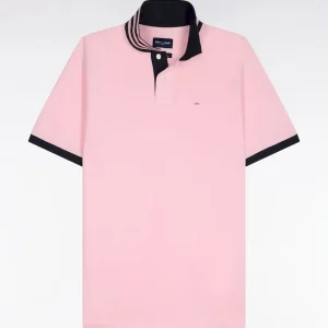 Polo manches courtes en piqué coton rose clair dessous de col rayé coupe slim