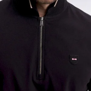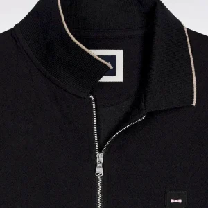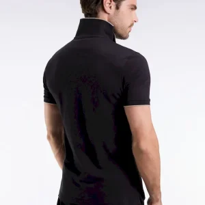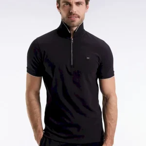Polo manches courtes en piqué coton stretch noir zippé coupe slim