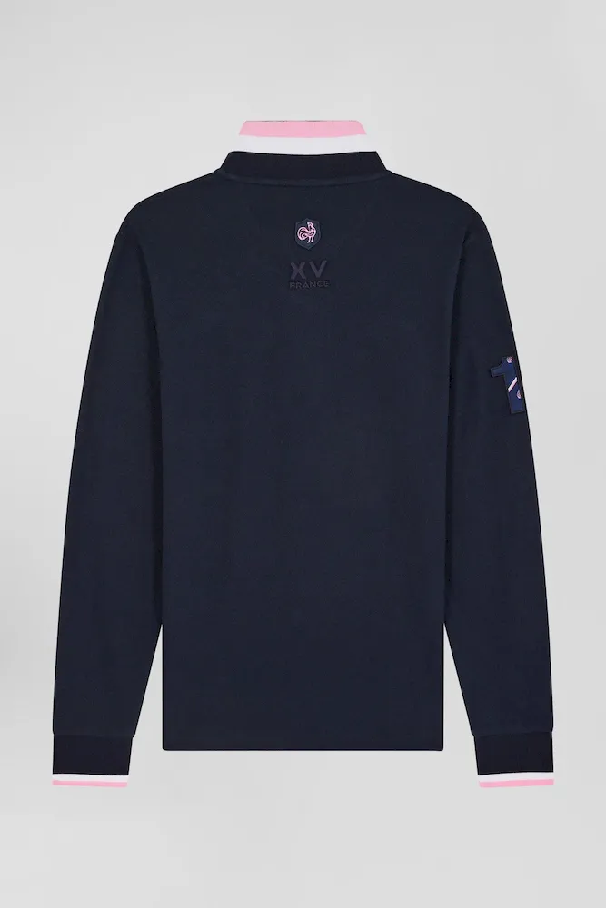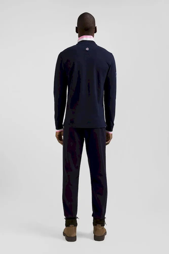 Célébrez l’esprit du rugby avec ce polo parfaitement conçu, reflétant l’élégance et l’héritage français de notre Maison. Confectionné en piqué coton de première qualité, il présente une coupe droite pour un confort optimal. Les finitions tricolores sur le col et les manches rappellent les couleurs hexagonales, soulignant un style à la fois sportif et sophistiqué. Paré d’une broderie nœud papillon rose et d’emblèmes distinctifs rehaussés par l’application de tissu cravate aux couleurs du XV de France, ce polo incarne la passion et le savoir-faire Eden Park.