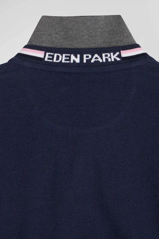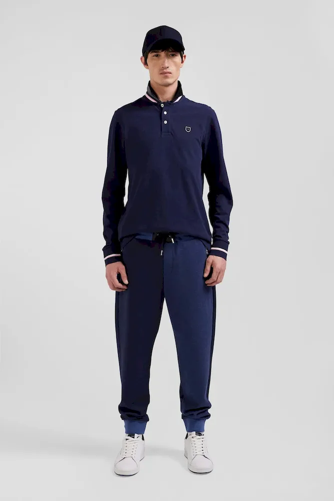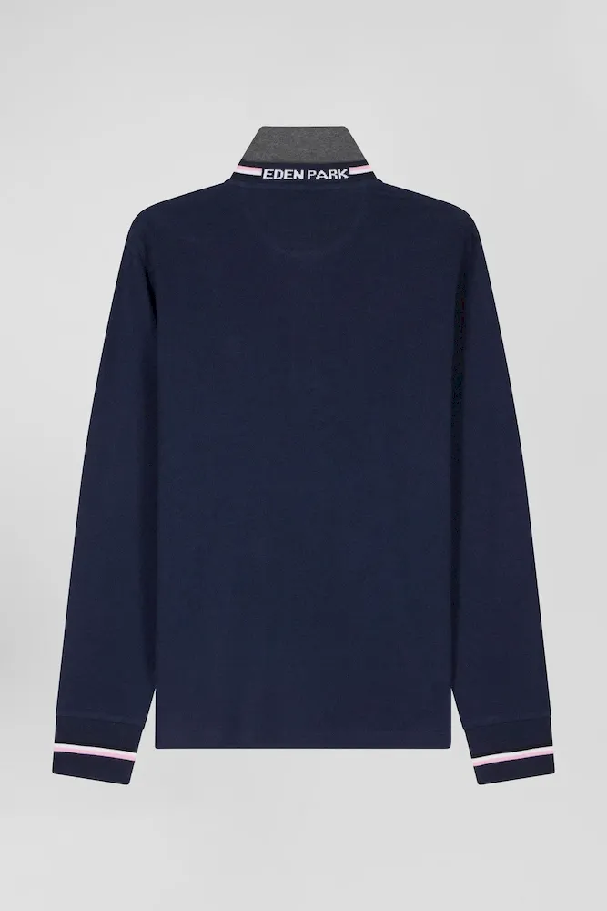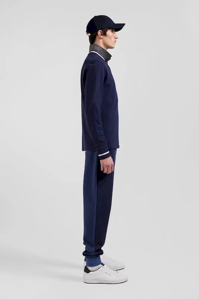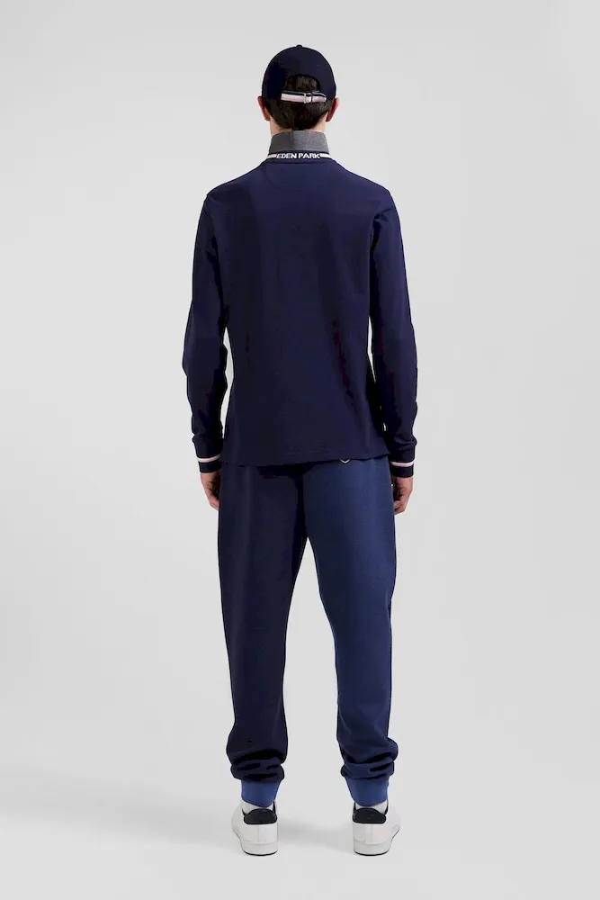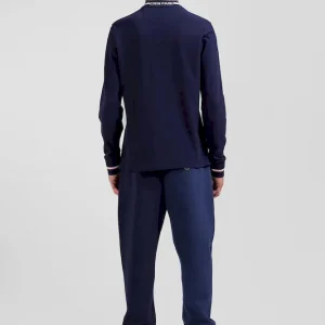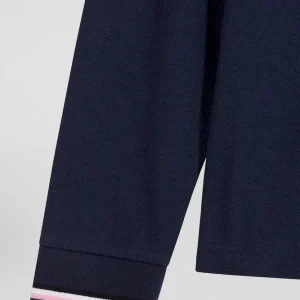 Confectionné en coton piqué doux, ce polo manches longues est orné d’un col tricolore pour une touche preppy. À l’arrière, le tricotage jacquard permet de signer ce polo du nom de notre maison pour un style sportif et travaillé à la fois. Retravaillée sous la forme d’un écusson en gomme, notre emblématique nœud papillon s’ajoute à cet intemporel.