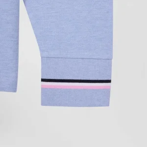 Confectionné en coton piqué doux, ce polo manches longues est orné d’un col tricolore pour une touche preppy. À l’arrière, le tricotage jacquard permet de signer ce polo du nom de notre maison pour un style sportif et travaillé à la fois. Retravaillée sous la forme d’un écusson en gomme, notre emblématique nœud papillon s’ajoute à cet intemporel.