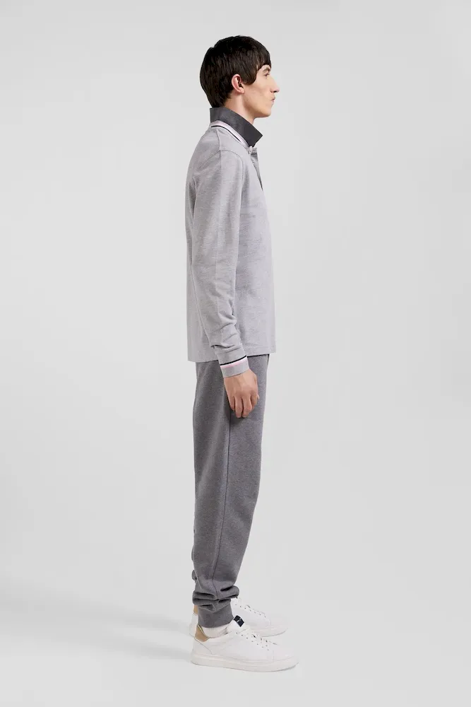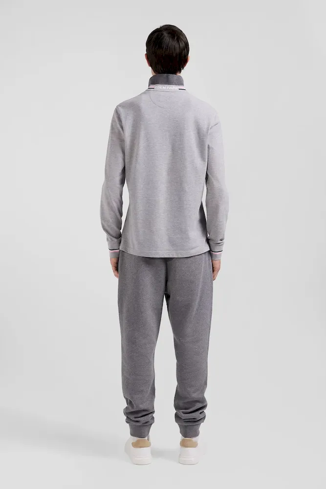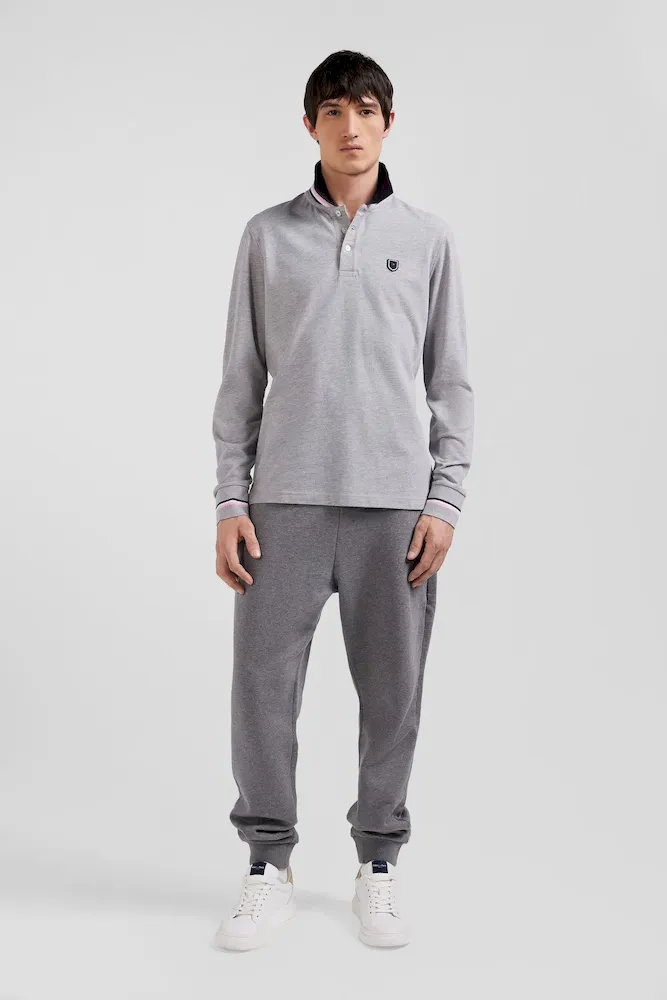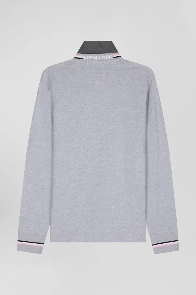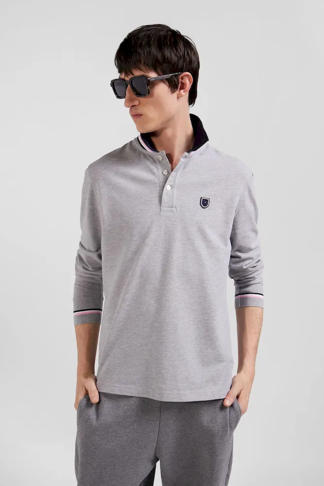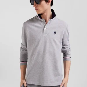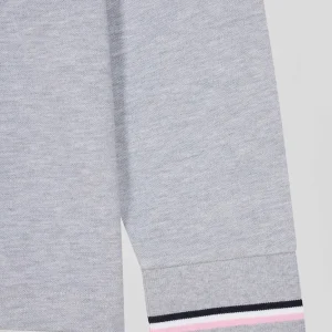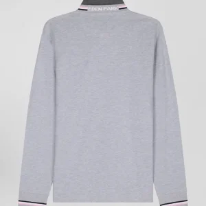 Confectionné en coton piqué doux, ce polo manches longues est orné d’un col tricolore pour une touche preppy. À l’arrière, le tricotage jacquard permet de signer ce polo du nom de notre maison pour un style sportif et travaillé à la fois. Retravaillée sous la forme d’un écusson en gomme, notre emblématique nœud papillon s’ajoute à cet intemporel.