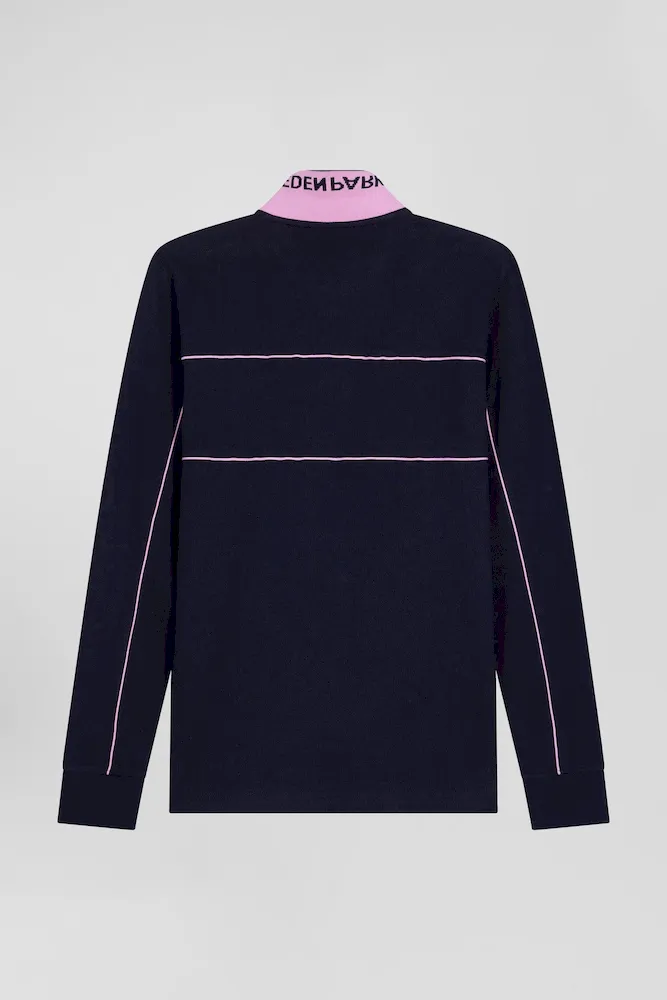 Avec son piqué de coton de qualité et sa coupe droite ce polo offre un confort de porté inégalé et une durabilité sans faille. Son style sportif rehaussé de détails emblématiques du savoir-faire et de la créativité Eden Park comme son passepoil et son dessous de col contrastés ou son col travaillé à l’aide d’un tricotage jacquard portant le nom de notre Maison.