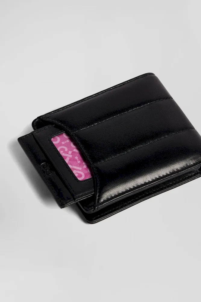 Optez pour notre porte-cartes en cuir noir véritable, présentant un élégant effet matelassé. Compact et raffiné, il offre une solution élégante pour ranger vos cartes tout en affichant une touche de sophistication discrète.