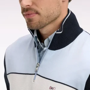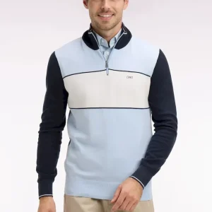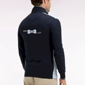 Ce pull homme en coton pur mêlant points jersey, envers et Ottoman combine esprit sportif et confort. Typique de notre vestiaire rugby chic ce pull à col camionneur zippé dispose d’une large broderie dos et d’une rayure blanche en milieu de corps inspiré des maillots. Une pièce essentielle pour un vestiaire léger porté avec un jean comme avec un pantalon cargo. Modèle intemporel proposé en coloris marine et ciel ou marine et rose.