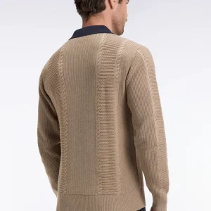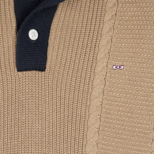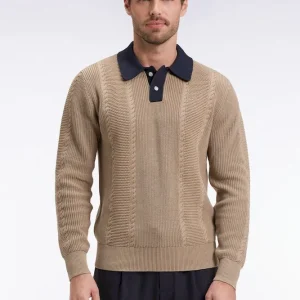 Ce pull à col polo vous propose une allure rétro twistée avec élégance par son col marine contrasté et sa patte de boutonnage travaillée en point milano. Le corps s’anime de torsades placées et de jeux de tricotage emblématiques du savoir-faire des ateliers Eden Park. Idéal pour une silhouette graphique et sophistiquée du matin au soir à la saison froide