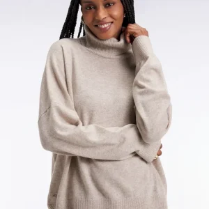 Tricoté dans un luxueux mélange de laine et de cachemire, ce pull femme à col roulé séduit par sa douceur enveloppante et sa coupe ample à emmanchures basses. Un essentiel cocooning décliné en trois coloris, marine, noir ou beige, parfait pour affronter l’hiver avec style en toutes occasions, années après années.