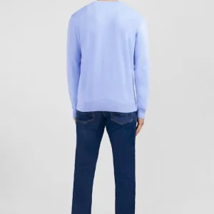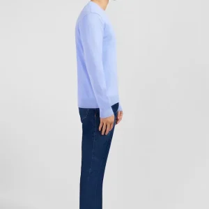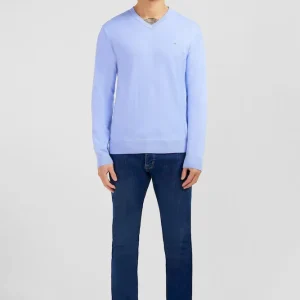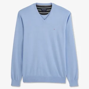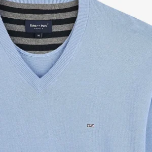 Pull bleu à col V en coton
