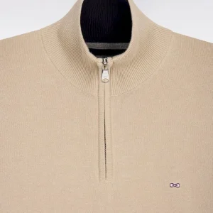 Pull col camionneur en coton beige