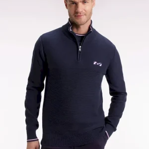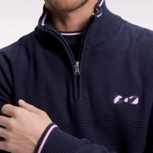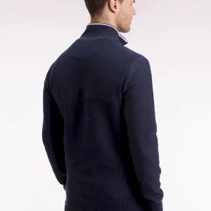 Pull col camionneur en coton marine à nœud papillon