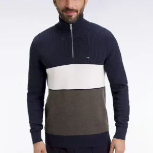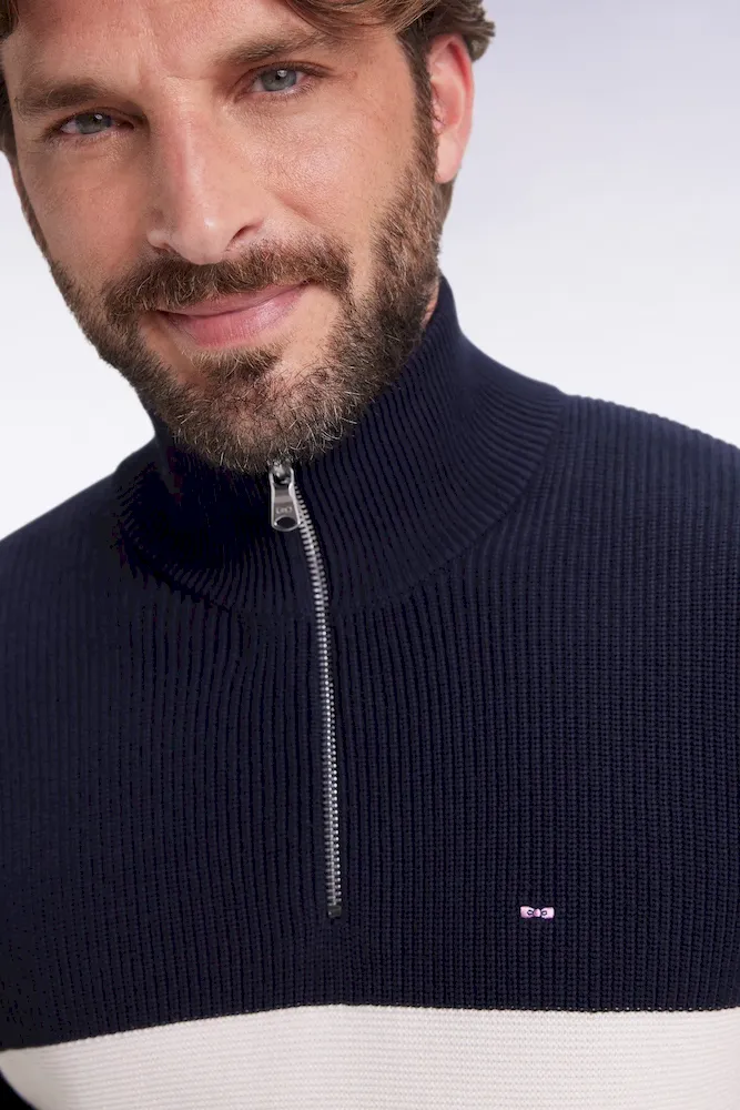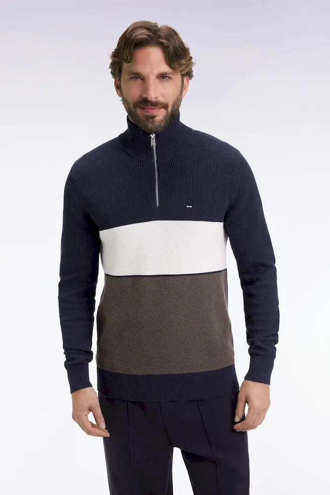 Fidèle à l’héritage Eden Park, ce pull tricolore propose une interprétation élégante de la rayure rugby. Alternance de textures, mix de points de tricotage, associations de couleurs raffinées : chaque détail souligne le savoir-faire de la maison et donne à ce pull à col zippé son caractère résolument contemporain