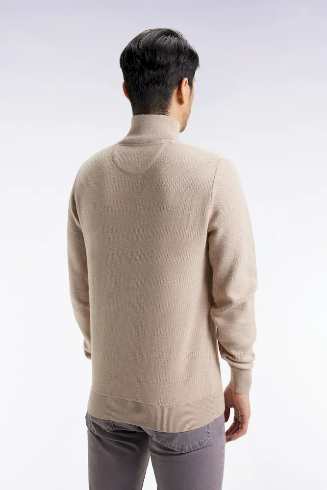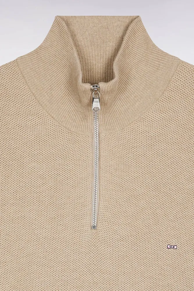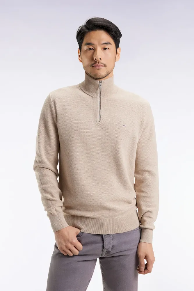 Jeu de textures et esprit décontracté pour ce pull col camionneur zippé, confectionné par nos ateliers dans un coton nid d’abeille à l’aspect légèrement texturé. Pensé pour conjuguer confort et allure, ce pull homme se distingue par son col montant zippé, idéal pour moduler le style selon l’envie : ouvert sur un T-shirt ou fermé pour une silhouette plus structurée. La broderie nœud papillon sur la poitrine et les bords-côtes ton sur ton viennent signer cette pièce au caractère affirmé, fidèle à l’héritage sport-chic Eden Park. Ce modèle fait partie d’un vestiaire complet décliné dans plusieurs formes et coloris pour s’adapter à tous les styles et morphologies