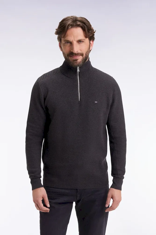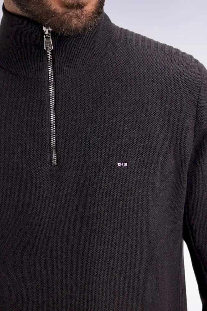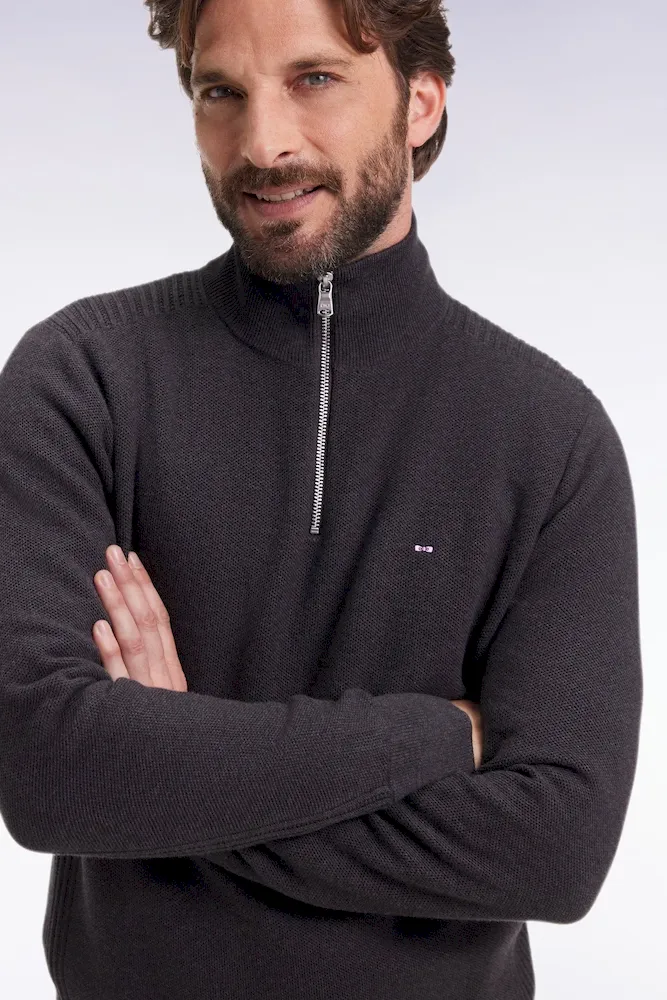 Tricoté dans un coton nid d’abeille pour une texture subtile et légère, ce pull camionneur à col zippé se distingue par son tricotage en côtes sur les côtés, les épaules et le dessous de manches. Son col montant zippé permet de moduler l’allure selon l’envie. Décliné dans une palette de coloris intemporels, il s’impose comme un essentiel du vestiaire masculin, à porter saison après saison