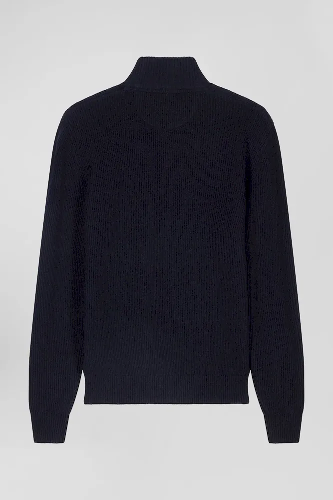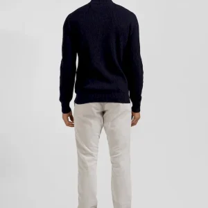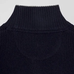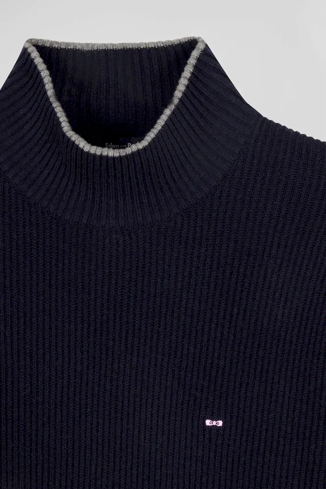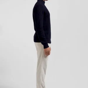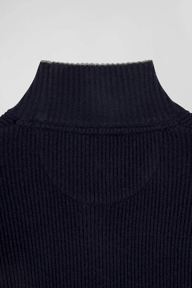 Ce pull col cheminée, confectionné dans un doux mélange de laine et de coton, est l’incarnation du raffinement décontracté. Les bords-côtes, rehaussés d’un fin liseré contrasté, ajoutent une élégance subtile tout en garantissant à ce pull homme un tombé impeccable. Son tricotage en côtes anglaises offre une texture riche et confortable. Un ruban tricoté à l’intérieur du col apporte une touche de sophistication supplémentaire à ce pull à la coupe droite, parfait pour une allure soignée et intemporelle.
