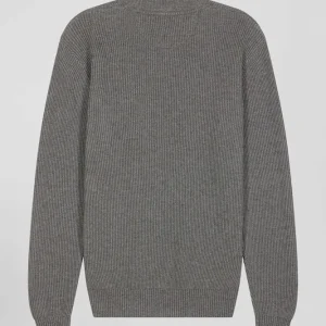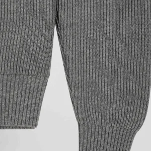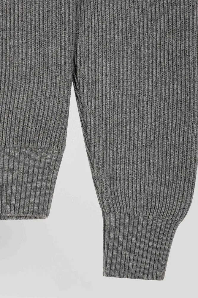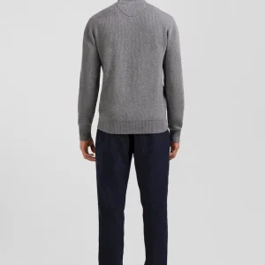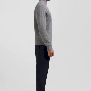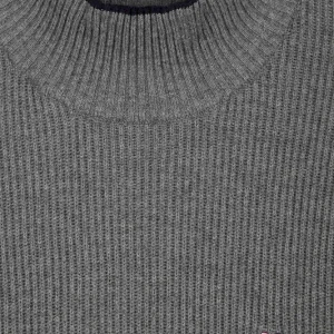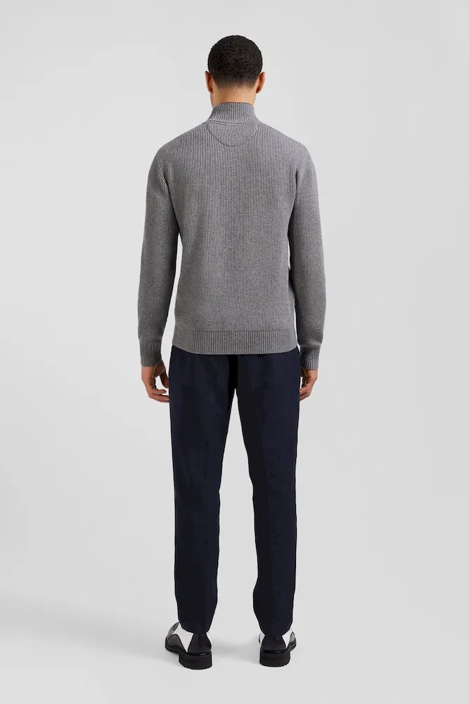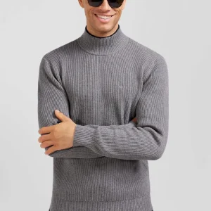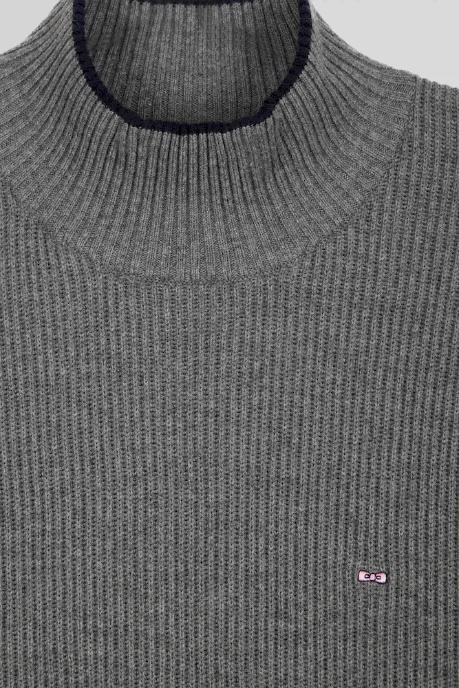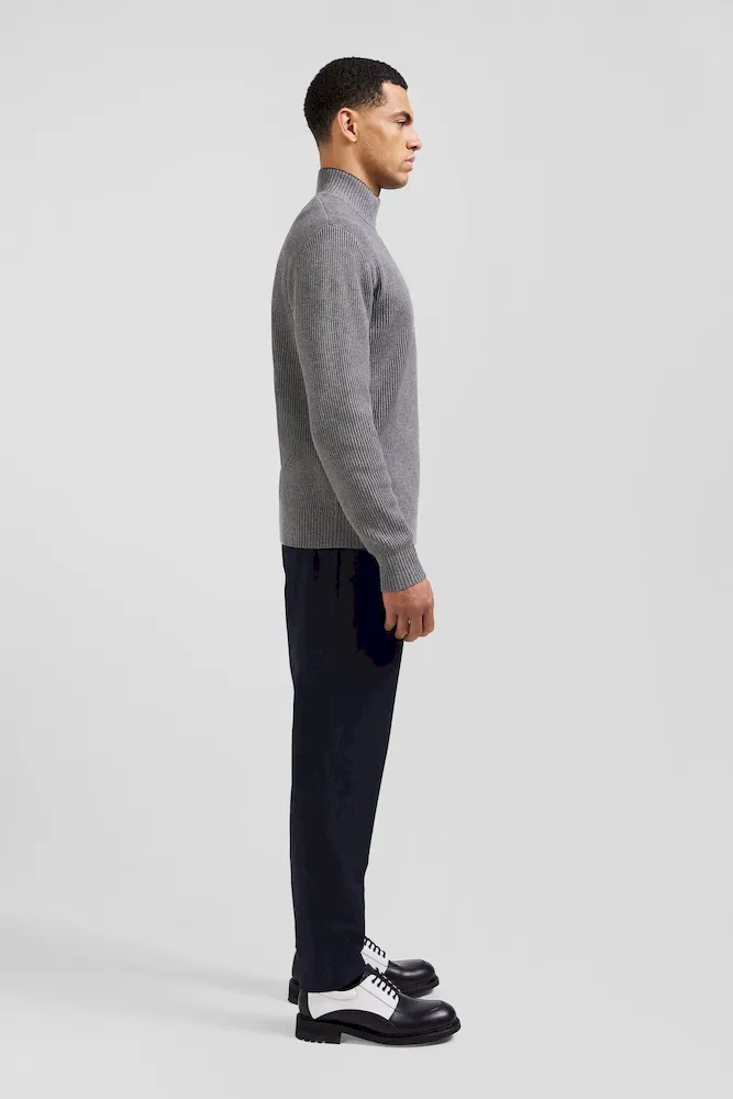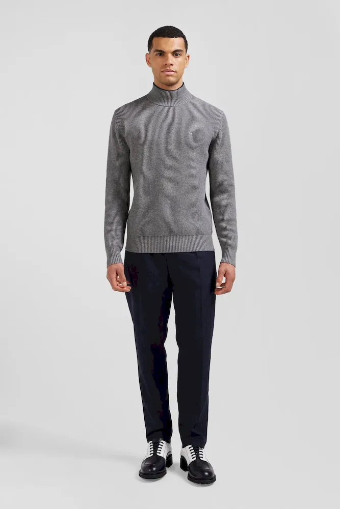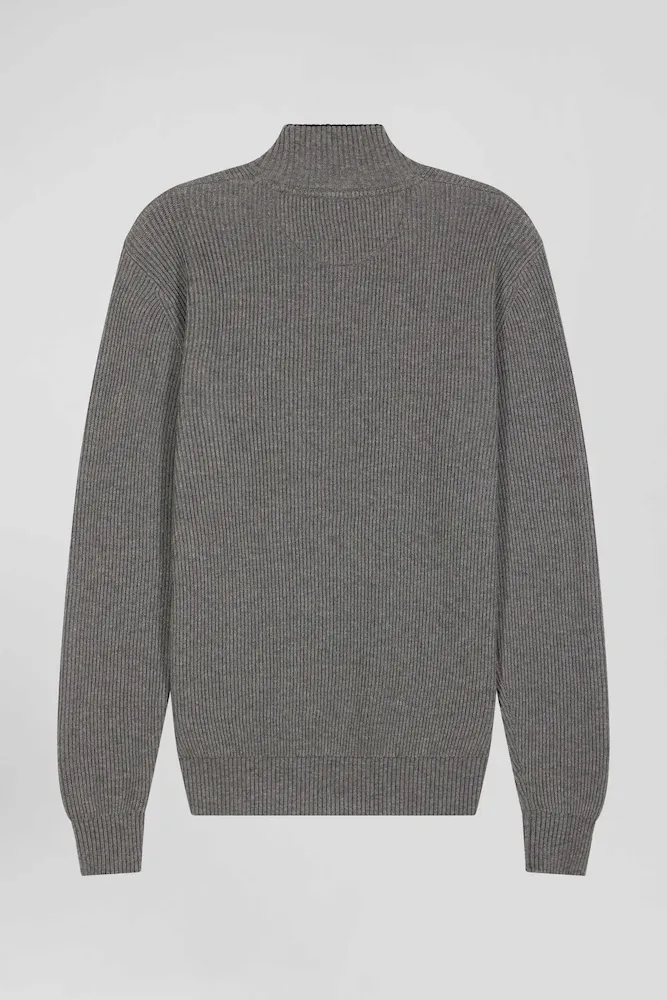 Pull col cheminée en laine et coton gris coupe Regular