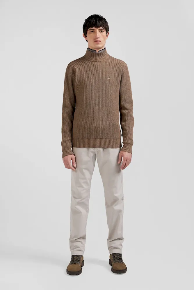 Pull col cheminée en laine et coton marron coupe Regular